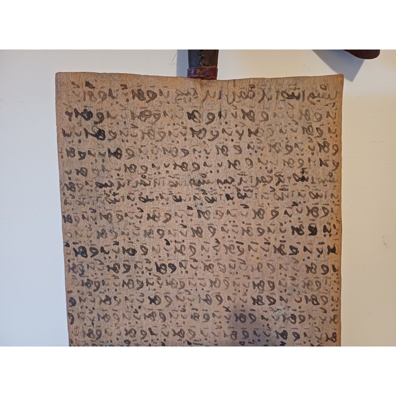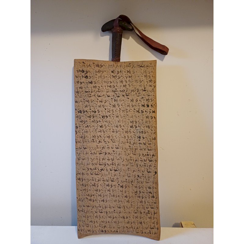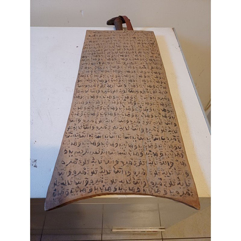 Tablette Planchette Coranique Peuls Dogon 19 ème , Double Façe , Bois et Cuir , Haut : 65 cm , long et larg : 26 cm sur 1 cm , poids : 1 Kg , très bon état