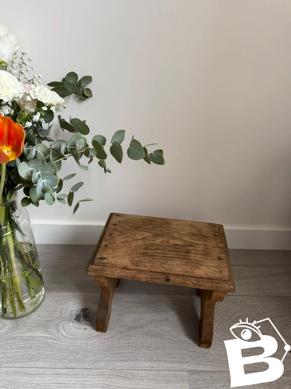 Ancien Petit Tabouret Repose Pieds bois merisier/old wooden footstool