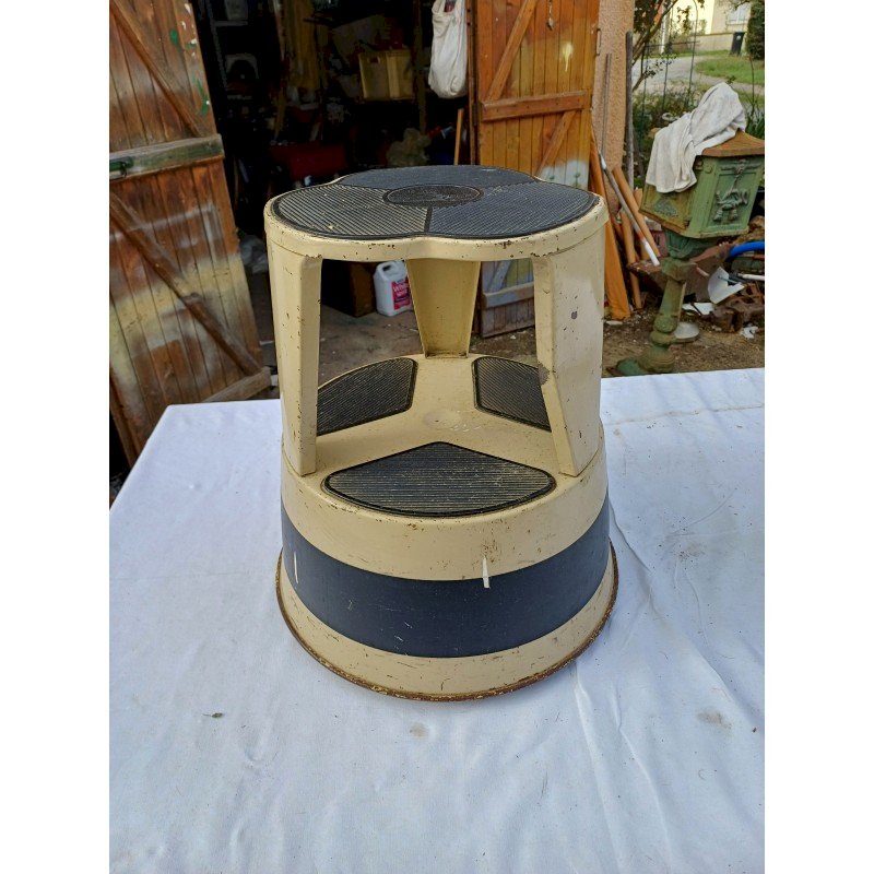 Tabouret Industriel Fer et Gomme Kik Step  , Haut : 44 cm , Diam : 38 cm , poids : 5 Kg  , Trés bon état