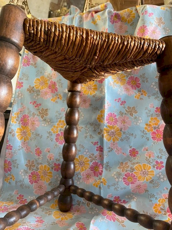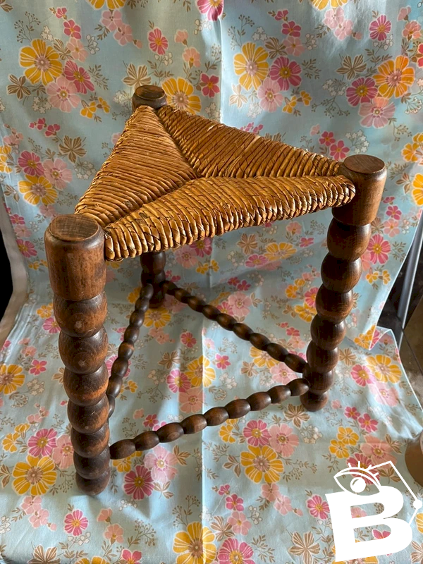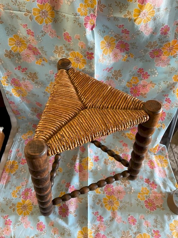 4 Tabourets bois et paille Tripodes Triangle vintage Perriand Circa 1950
