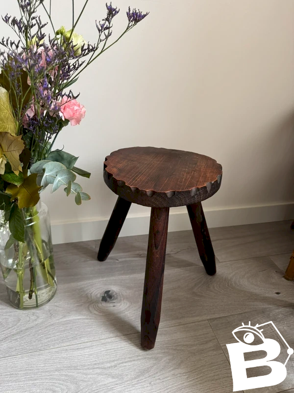 Ancien tabouret de traite, à détourner en petit siège pour enfant, en porte-plante ou en assise d’appoint au salon.