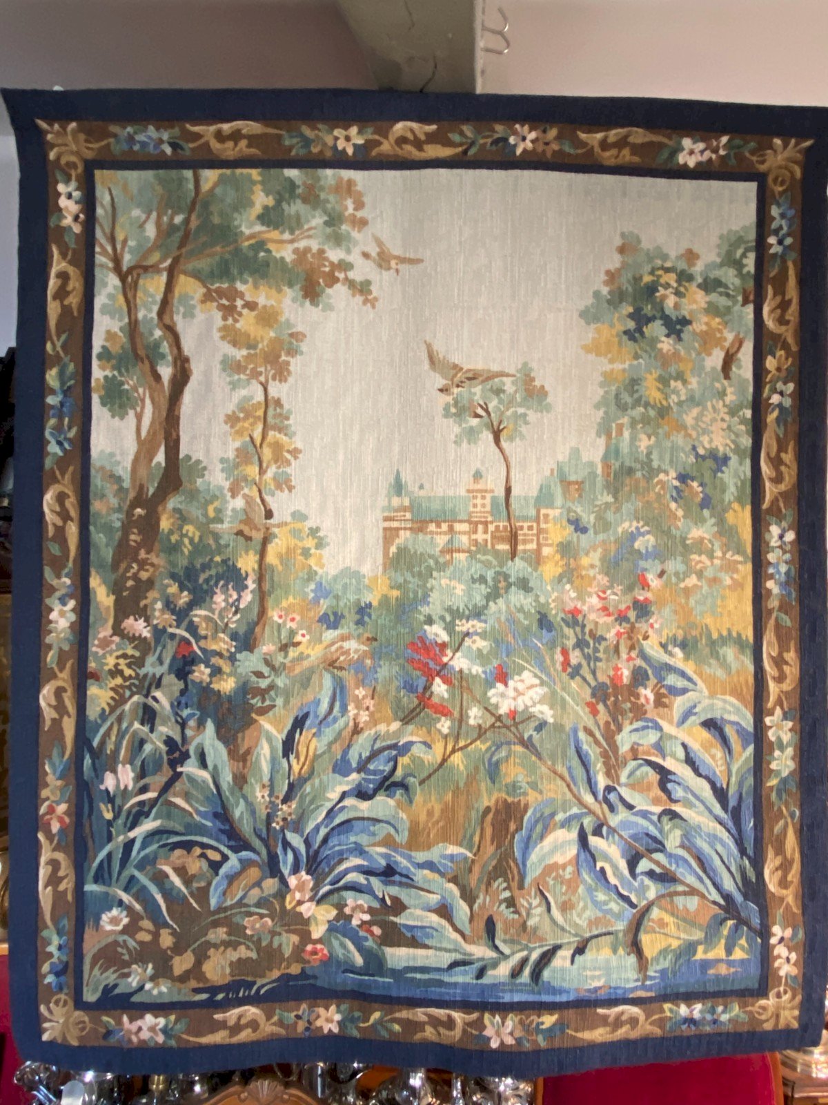 Tapisserie style verdure XVIIIe au château Robert Four Aubusson titrée l'été