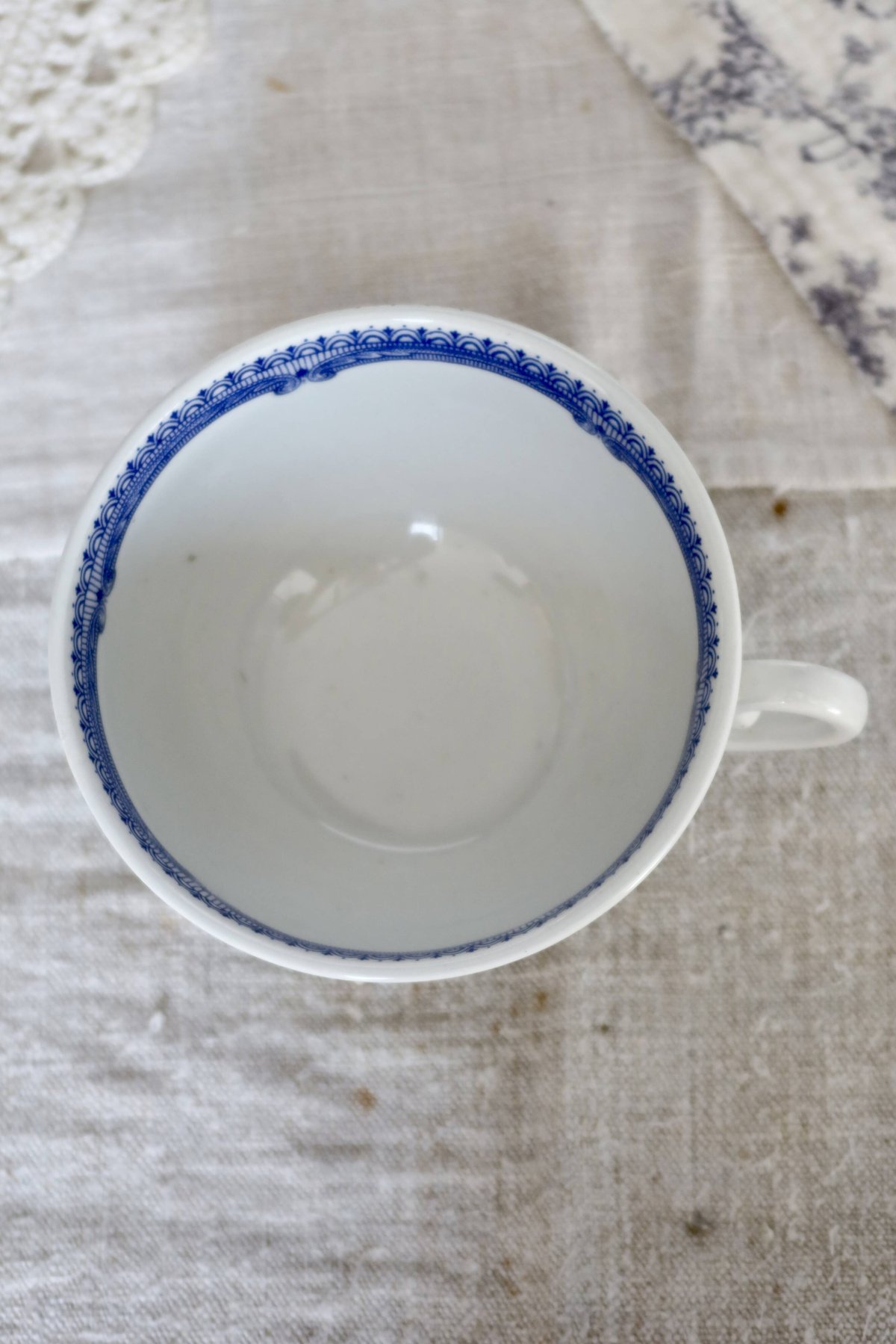 Tasse à thé ancienne en faïence bleue et blanche - Décor floral