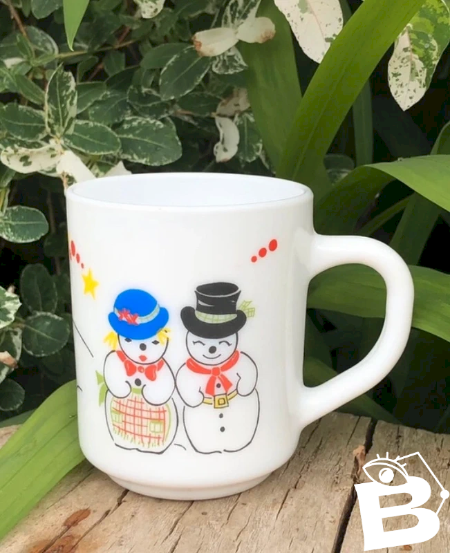 Tasse de Noël Arcopal motifs sapins et bonhommes de neige