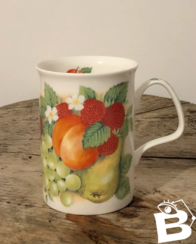 Tasse en porcelaine Roy Kirkham motifs fruits