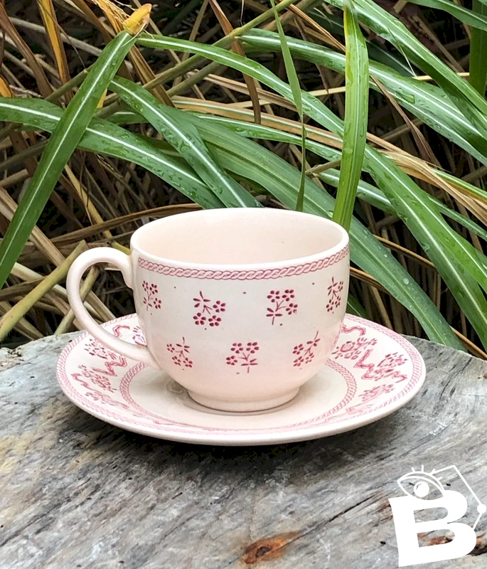 Tasse et soucoupe rose clair England Johnson Brothers modèle Petite Fleur en très bon état , discrètes rayures d usage au fond de la tasse Hauteur tasse 6,5 cm Diamètre tasse 8,5 cm Diamètre soucoupe 14,5 cm...