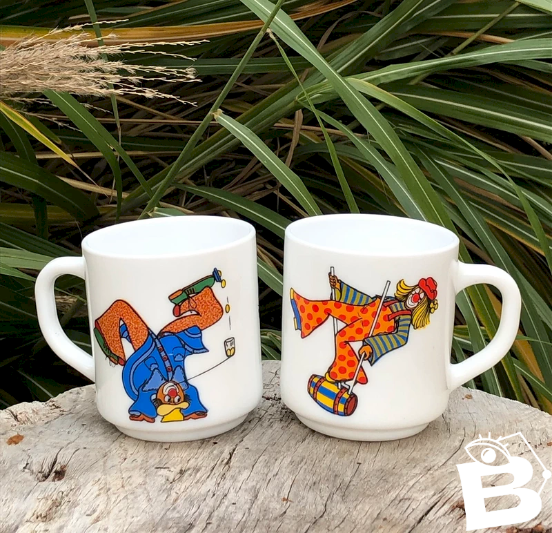 2 Tasses Arcopal vintage motifs clowns en excellent état Hauteur 9 cm Diamètre 8 cm