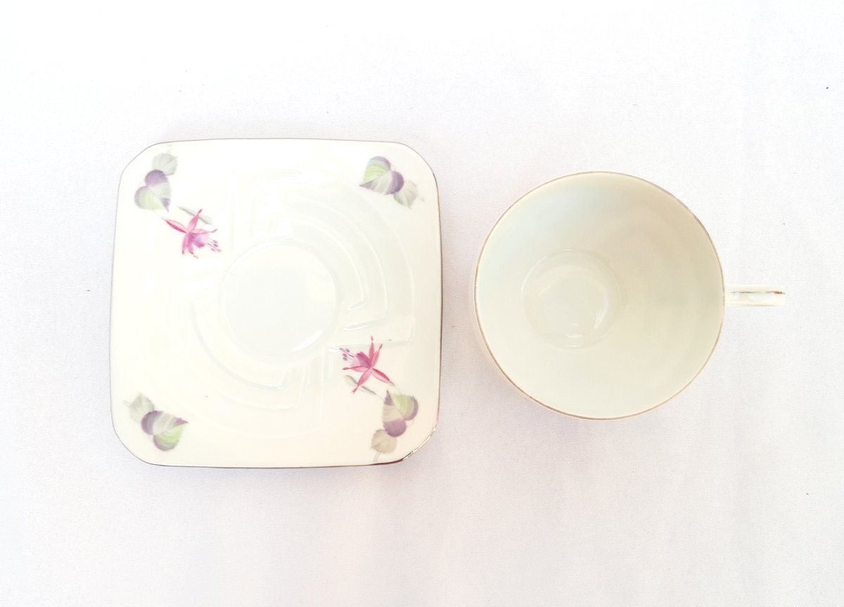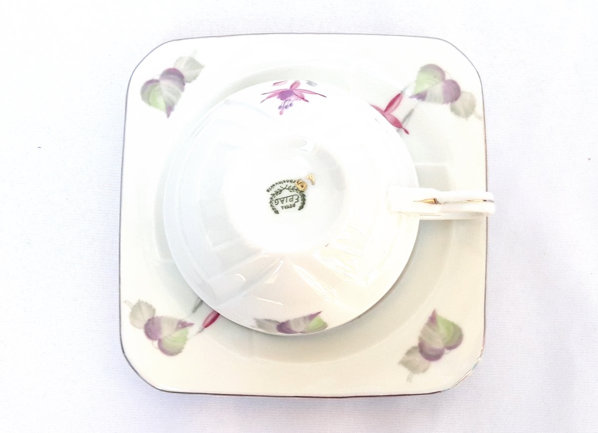 Tasses porcelaine Art Déco décor fuchsias