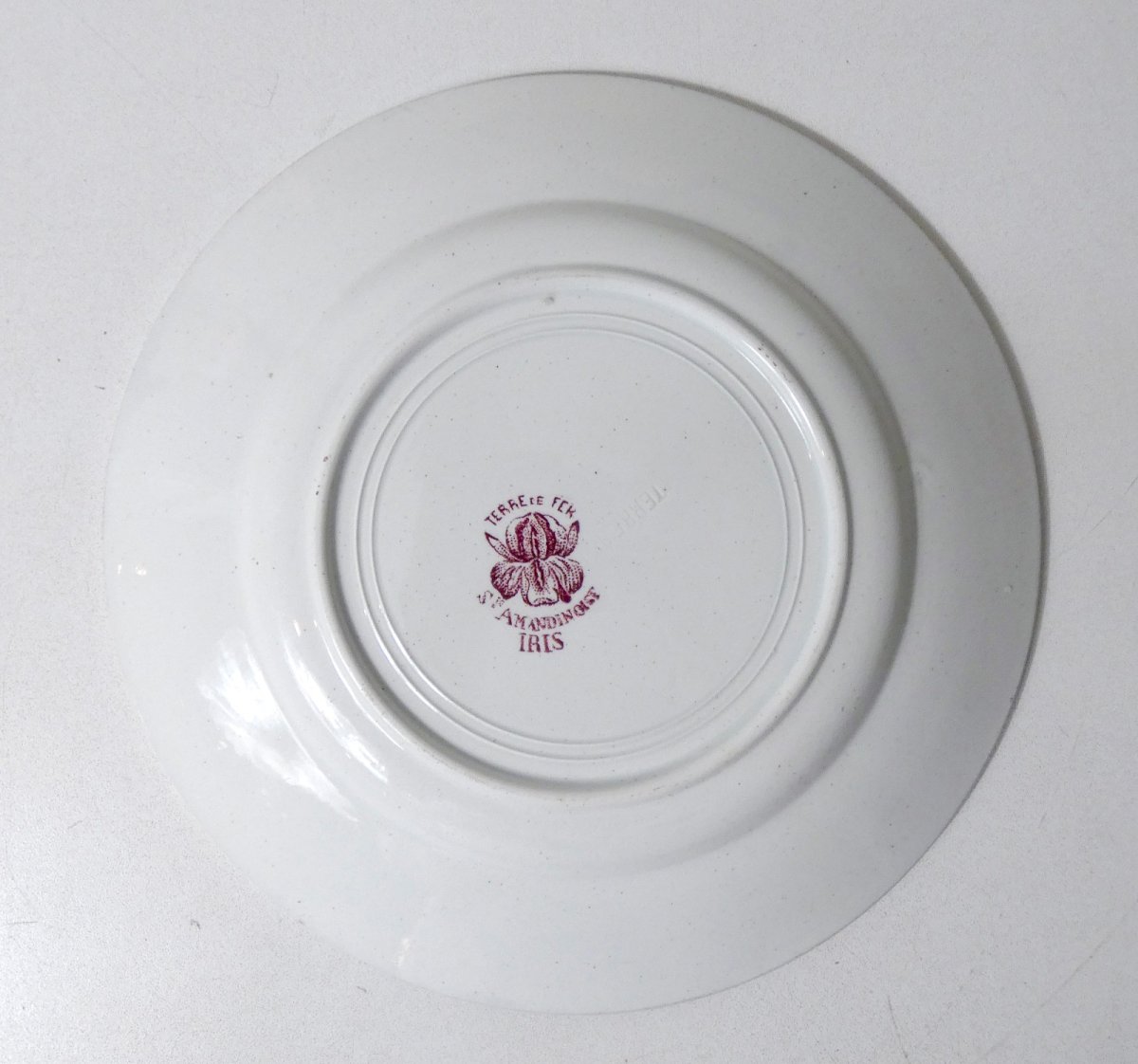 Terre de Fer. Une assiettes plate. Modèle IRIS, manufacture Ste AMANDINOISE. Diamètre: 23 cm. Hauteur: 2,5 cm. En excellent état. État:Occasion: Objet ayant été utilisé. Objet présentant quelques marques d'usure superficielle, ...Occasion: Objet ayant été utilisé. Objet présentant quelques marques d'usure superficielle, entièrement opérationnel et fonctionnant correctement. Il peut s'agir d'un modèle de démonstration ou d'un objet retourné en magasin après une courte période d'utilisation. les éventuelles imperfections. Marque:terre de fer Type:Assiette de service Matériau:Céramique
