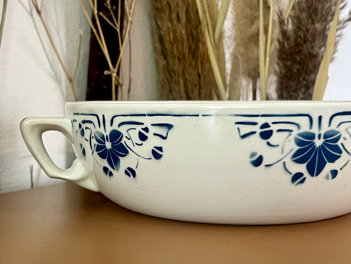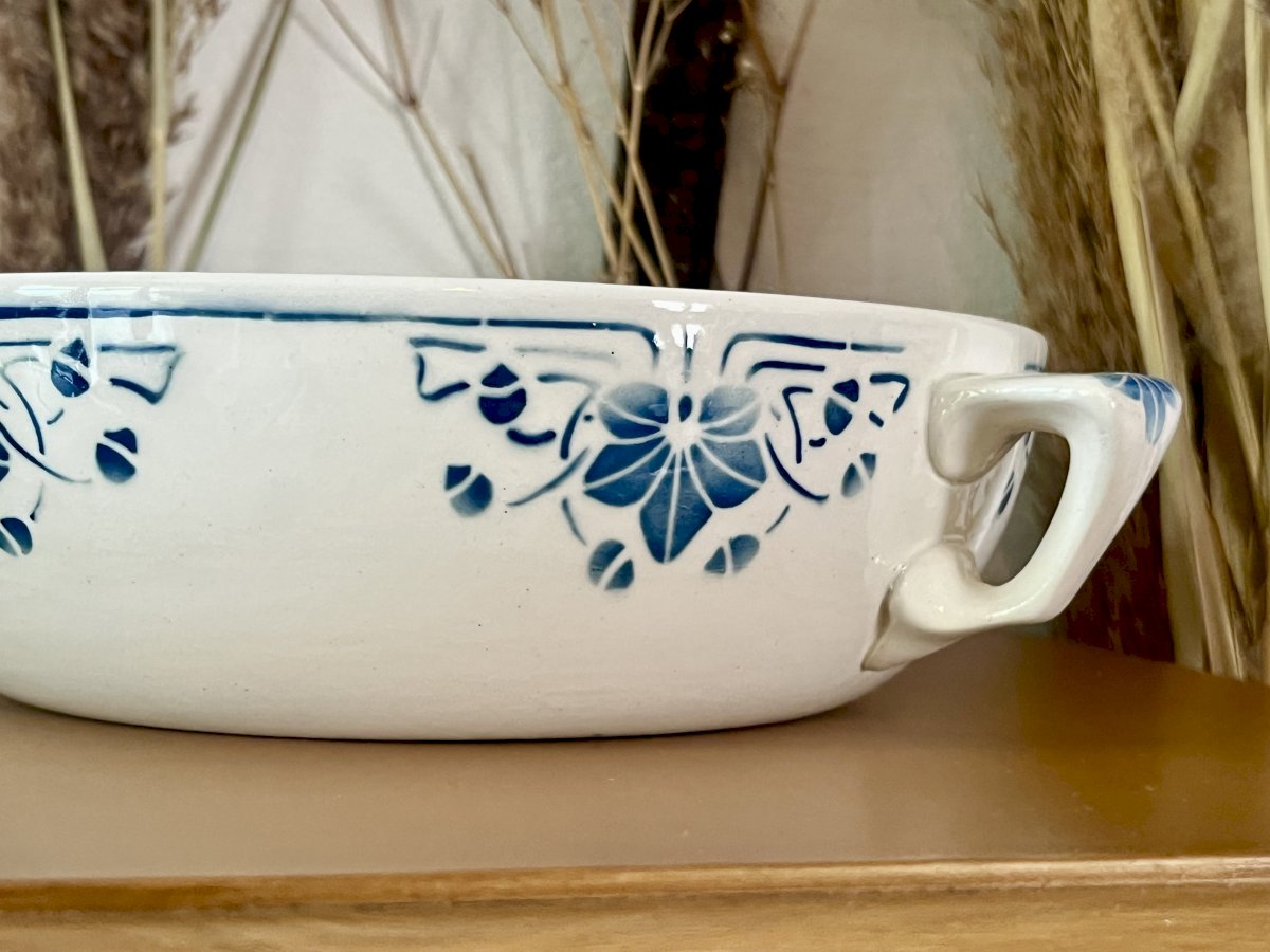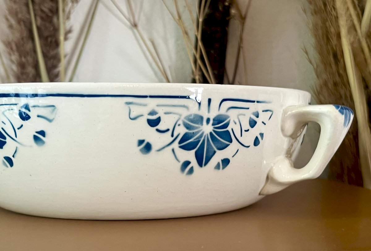 Terre de Fer - Plat de service ou soupière Baudin - Badonviller Beige/Bleu Céramique/Faïence/Porcelaine