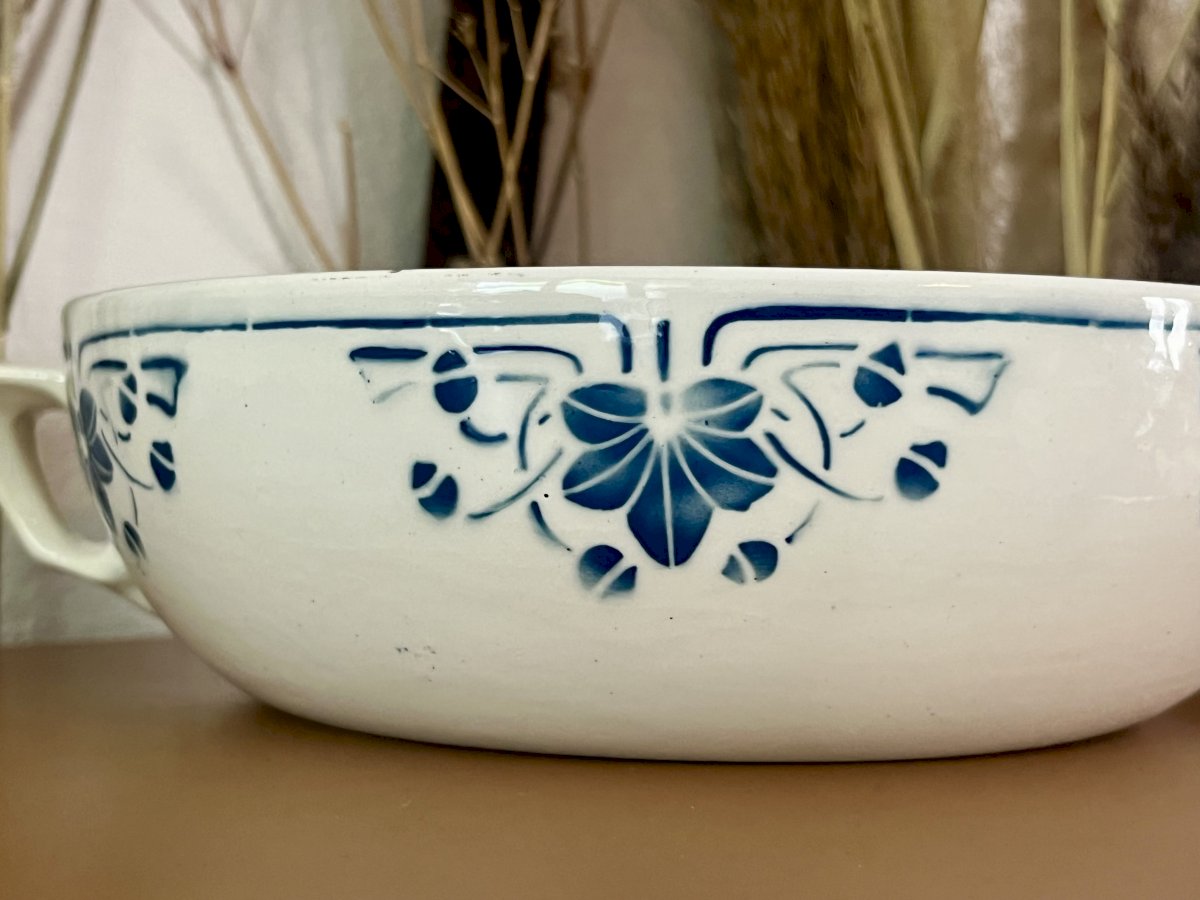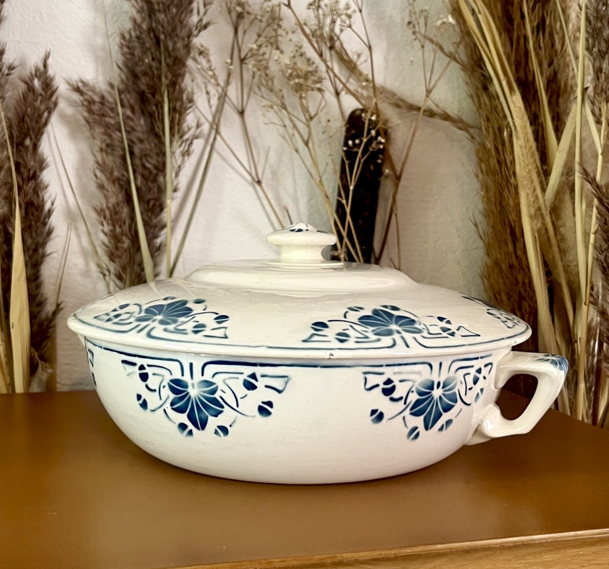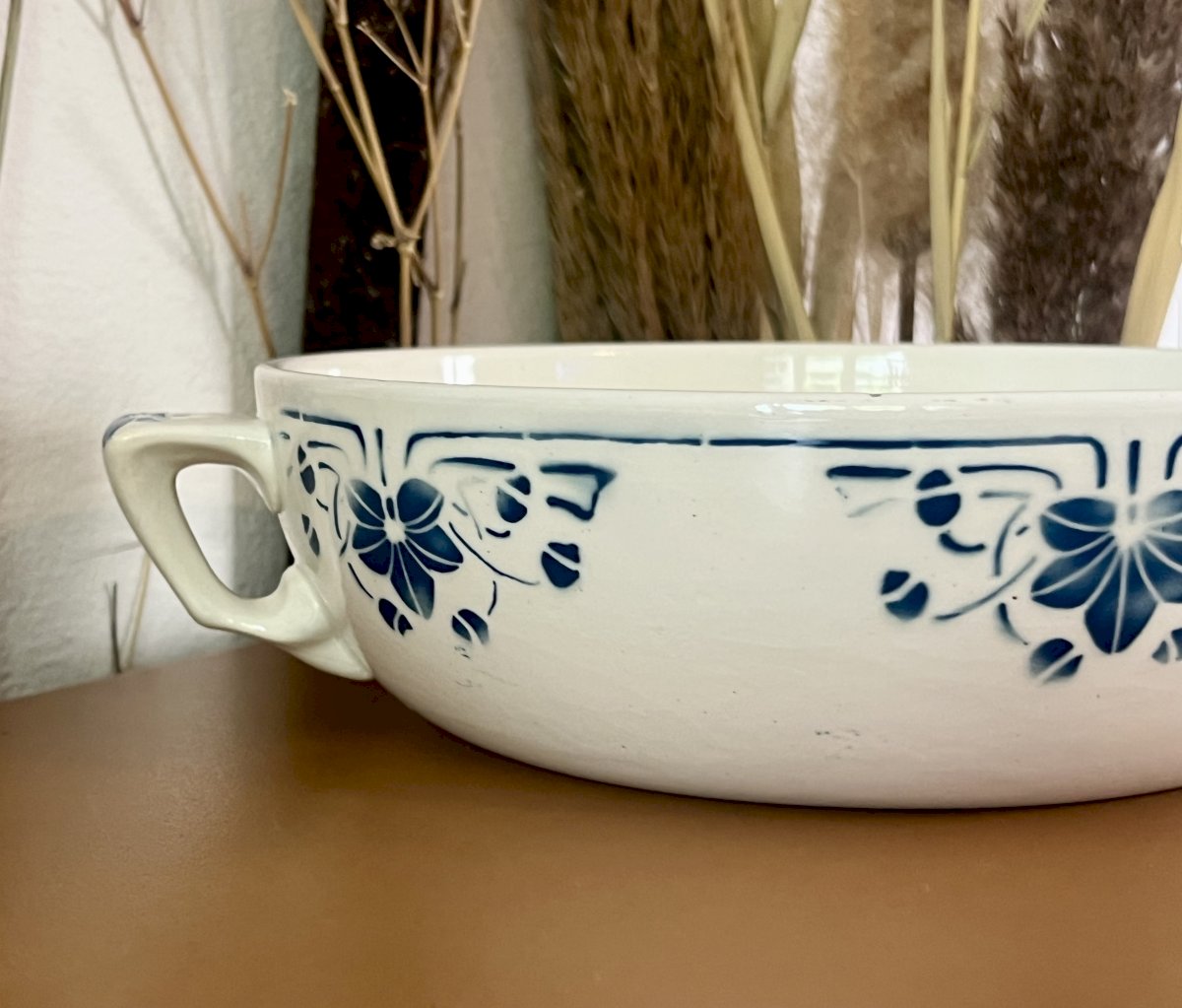 Terre de Fer - Plat de service ou soupière Baudin - Badonviller Beige/Bleu Céramique/Faïence/Porcelaine