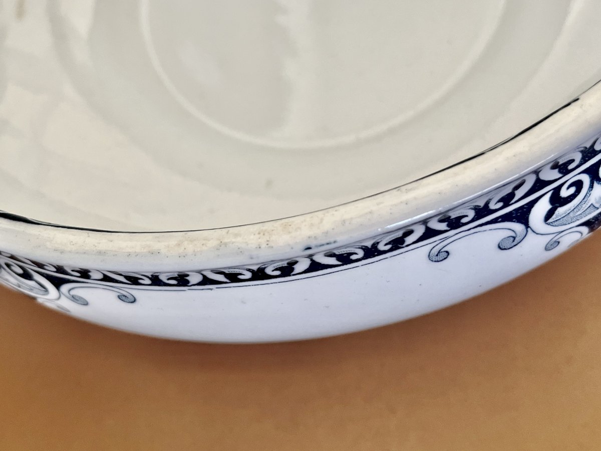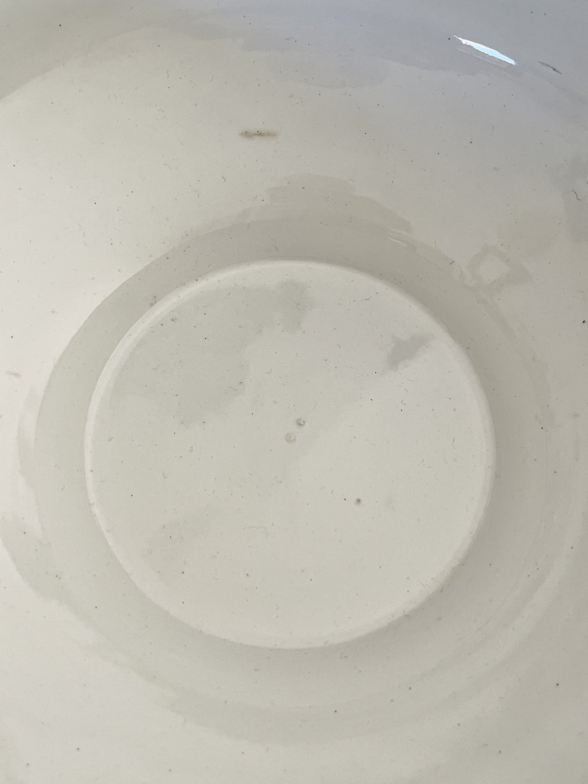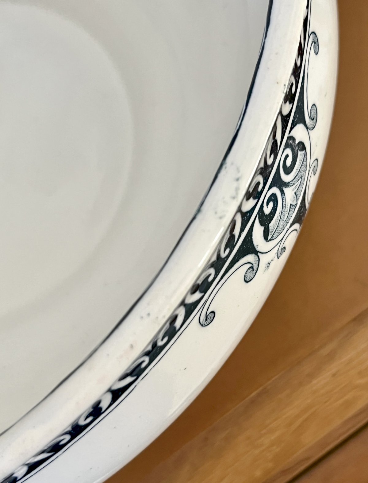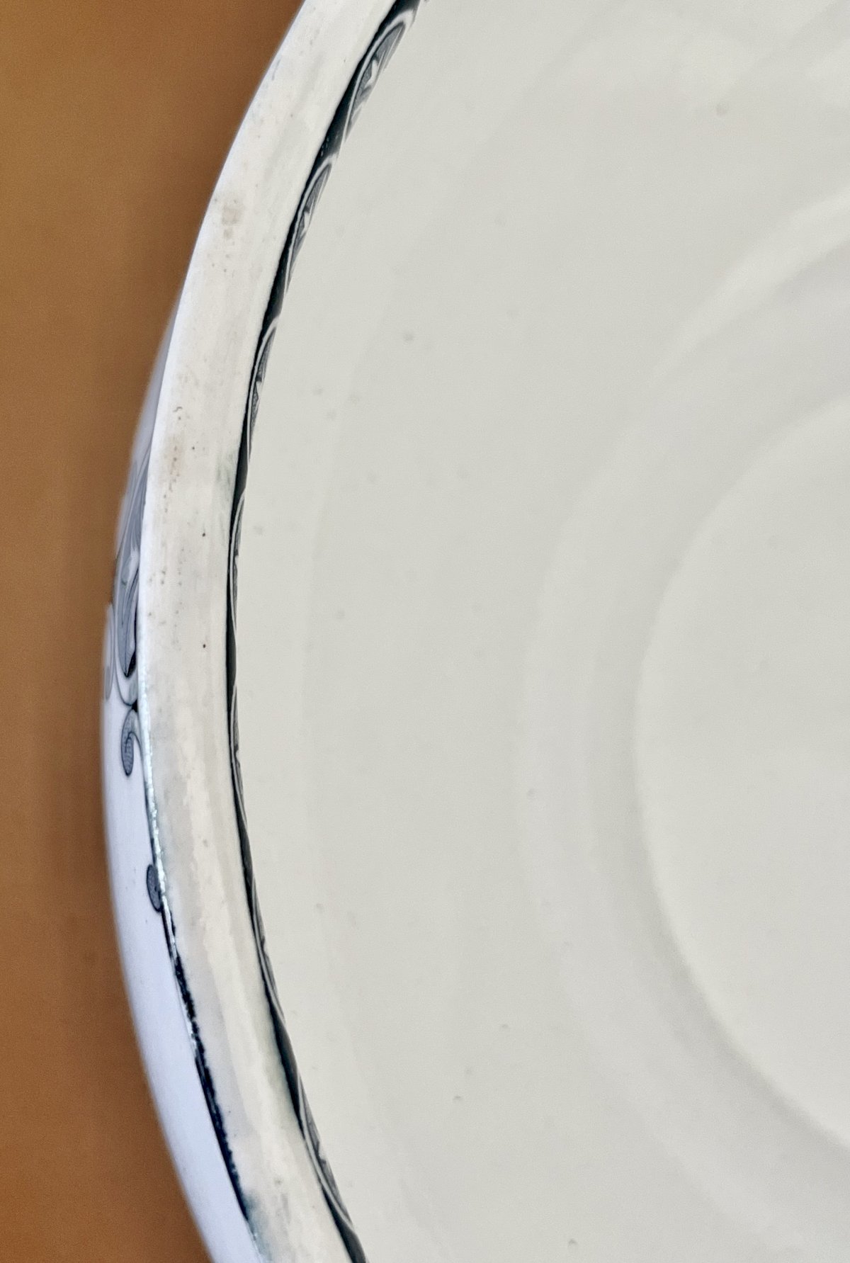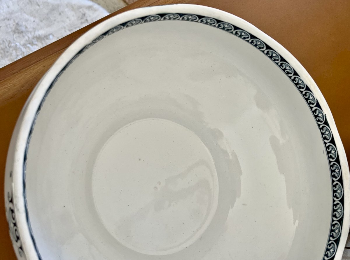 Epatez vos convives avec cet authentique saladier "ANDRINOPLE" en faïence dite porcelaine opaque ou appellation "Terre de Fer", à motif orientale bleu sur fond crème.