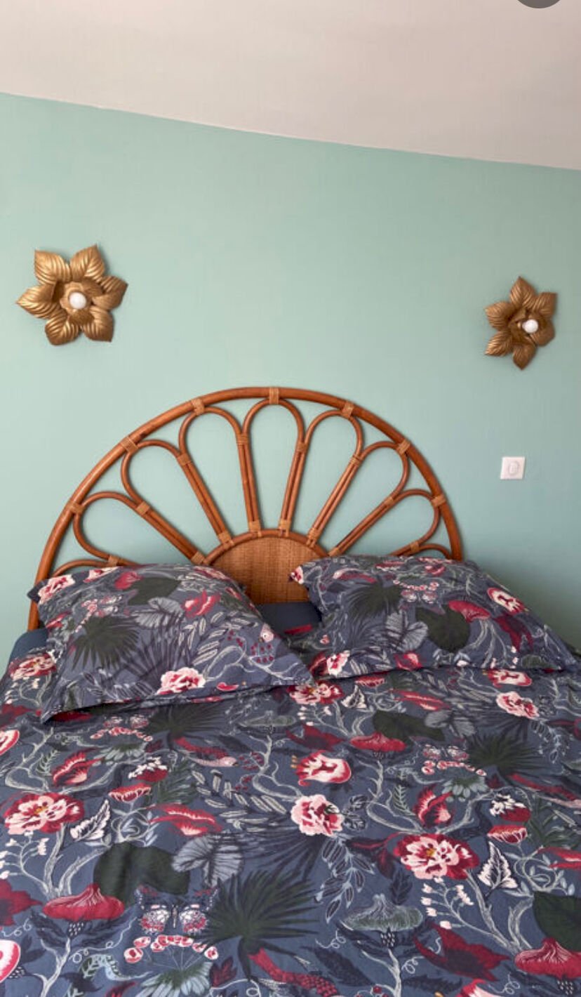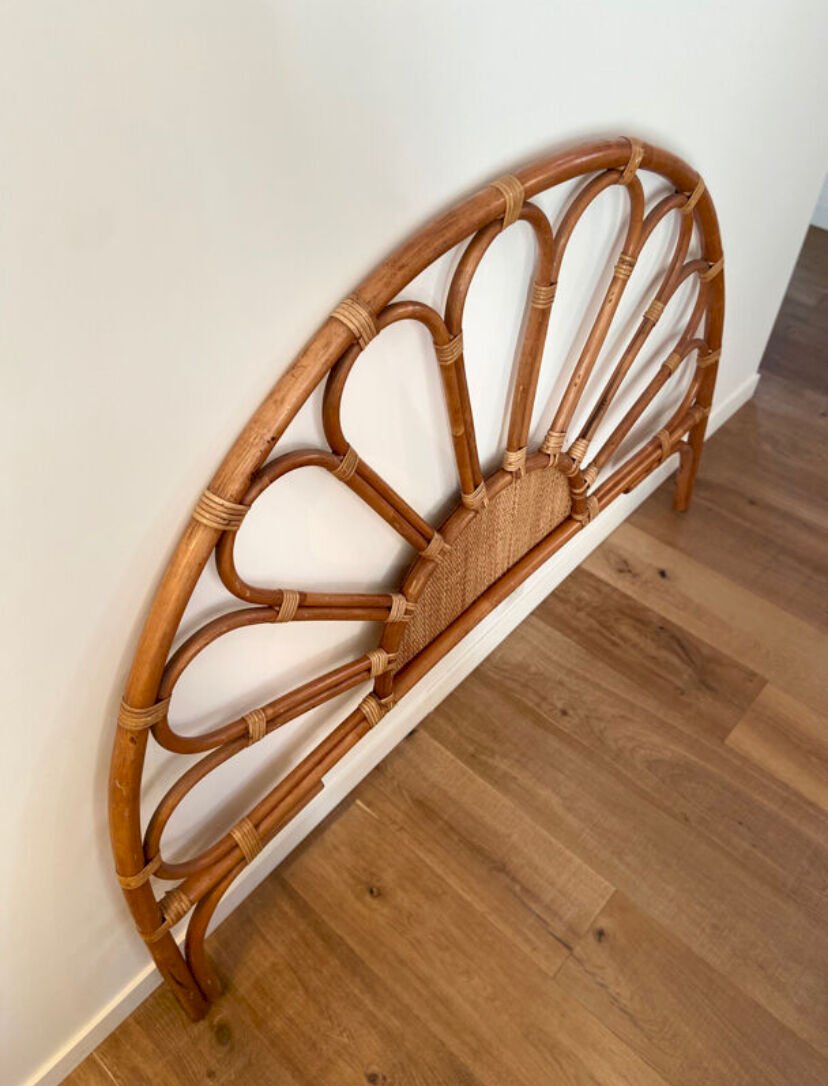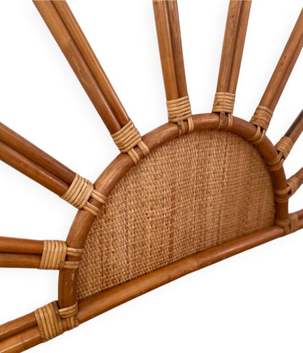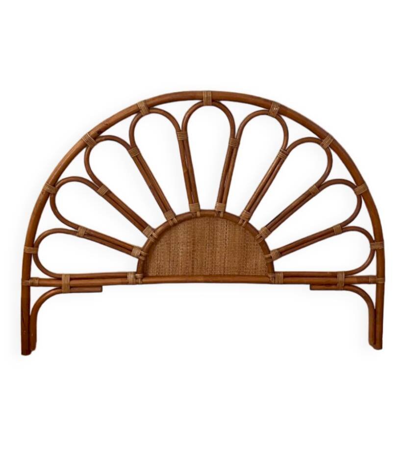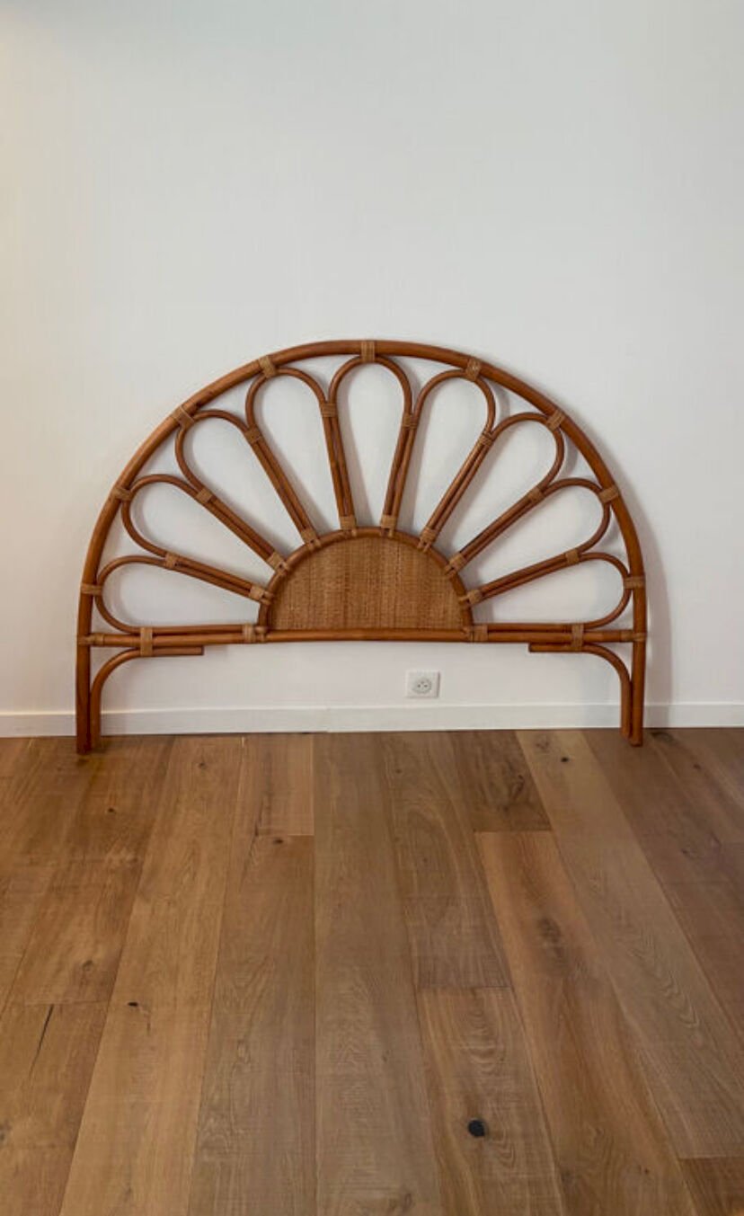 Tête de lit en rotin et cannage vintage 1970 pour lit 2 places