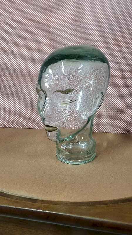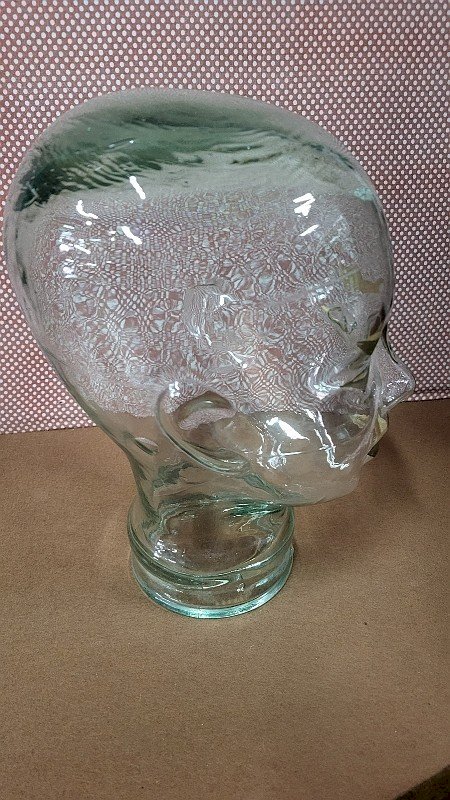 TETE EN VERRE MAROTTE PORTE CHAPEAU OU PERRUQUE DES ANNEES 1970 N°1