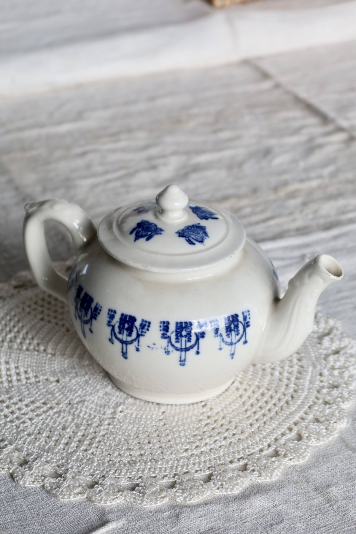 Théière ancienne Saint-Uze terre dacier motif bleu cobalt