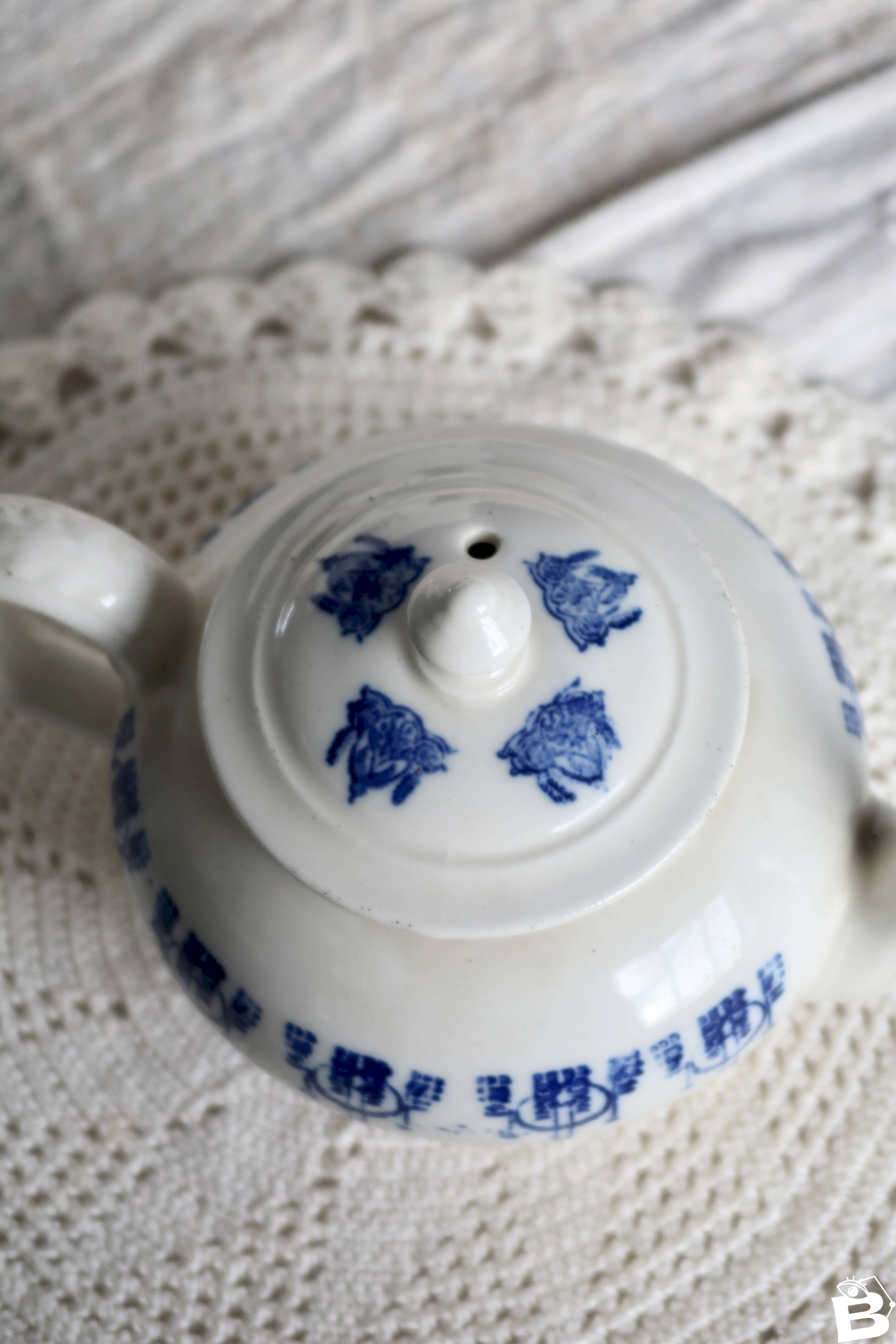 ASIE ancienne petite théière porcelaine décor floral bleu blanc à identifier