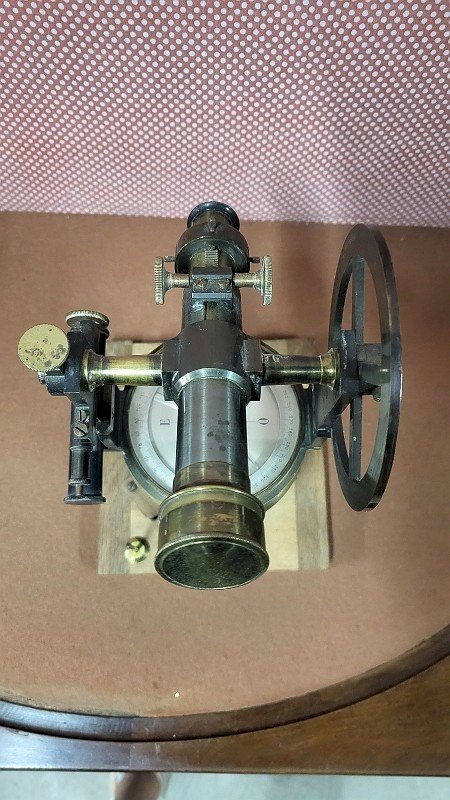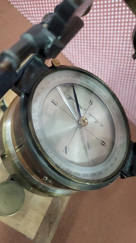 superbe théodolite goniomètre en laiton boussole A Santi à Marseille il est en très bon état il est posé sur son socle en bois c'est une très belle pièce il mesure 12 cm de diamètre sur 25 cm de haut État:Occasion: Objet ayant été utilisé. Consulter la description du vendeur pour avoir plus de détails ...Occasion: Objet ayant été utilisé. les éventuelles imperfections. Type:Boussole, Compas