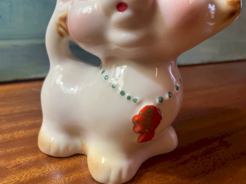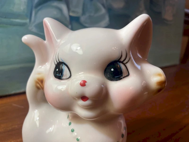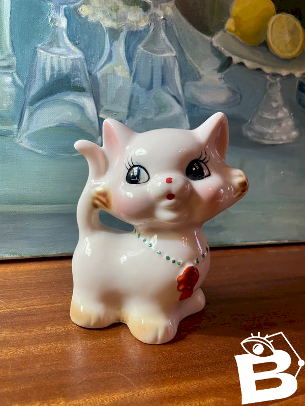 Tirelire chat en porcelaine vintage Argenté/Rose Animal