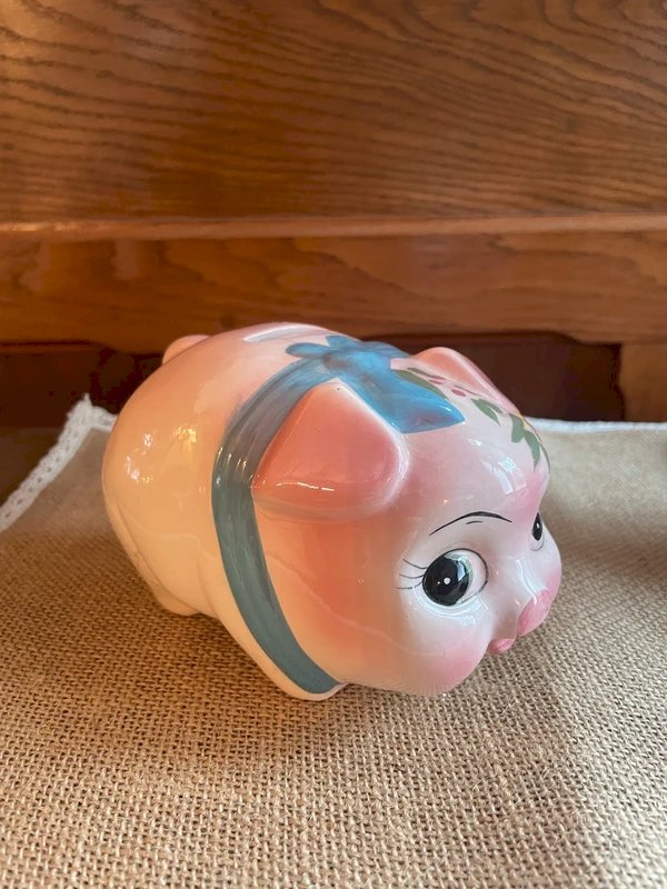 Tirelire cochon vintage 1970 Rose Céramique