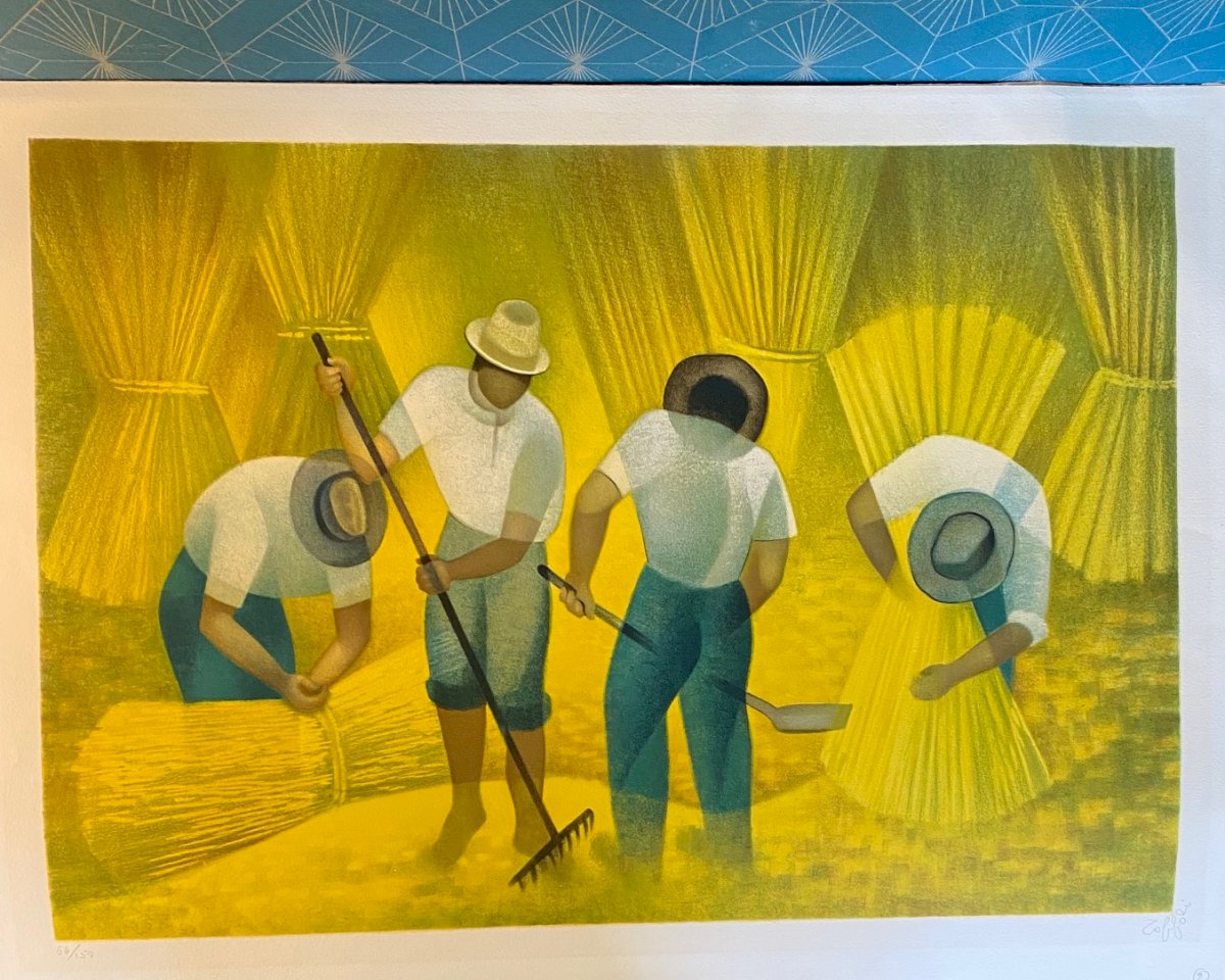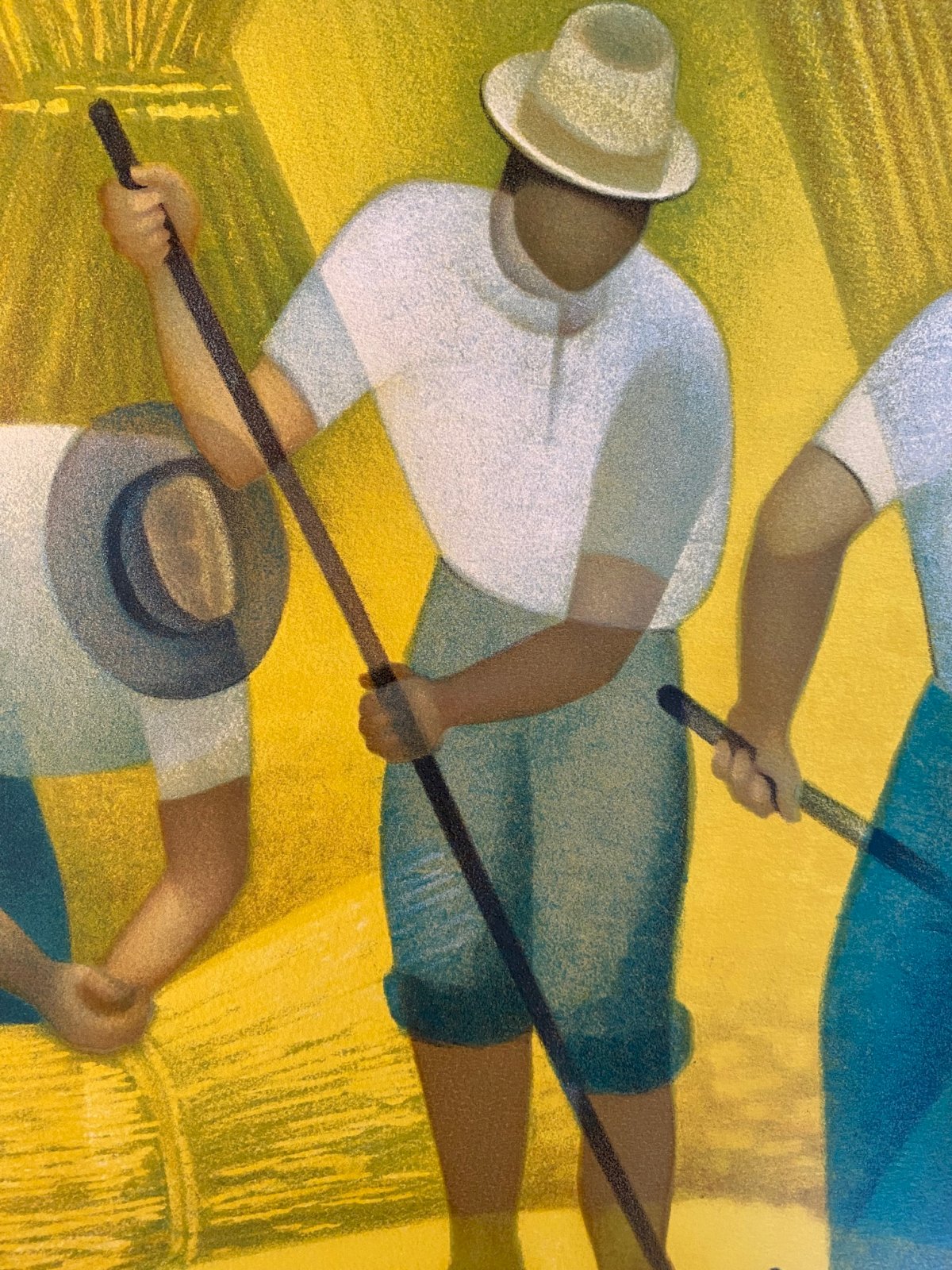 Très belle lithographie signée Louis Toffoli, ( 1907-1999). Elle est dédicacée. Intitulée. Moisson. Litho sur Arches signée en bas à droite et justifiée 66/150, elle mesure 56x75,5cm et en très bel état. Une petite tâche en haut à gauche.