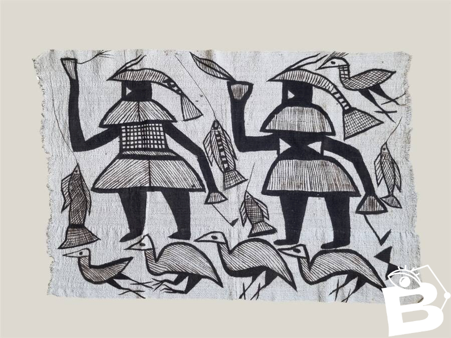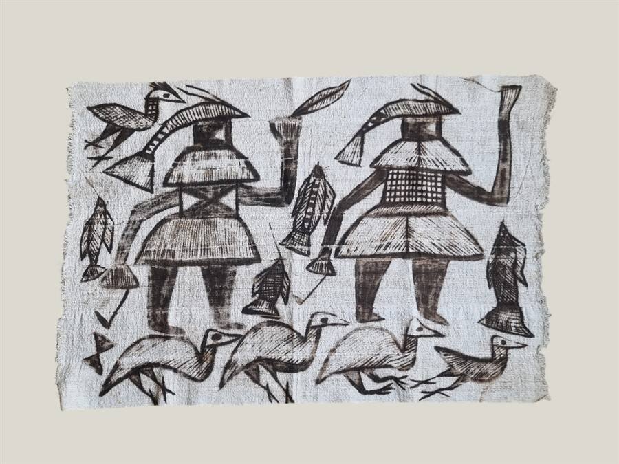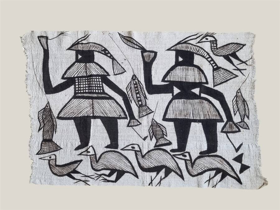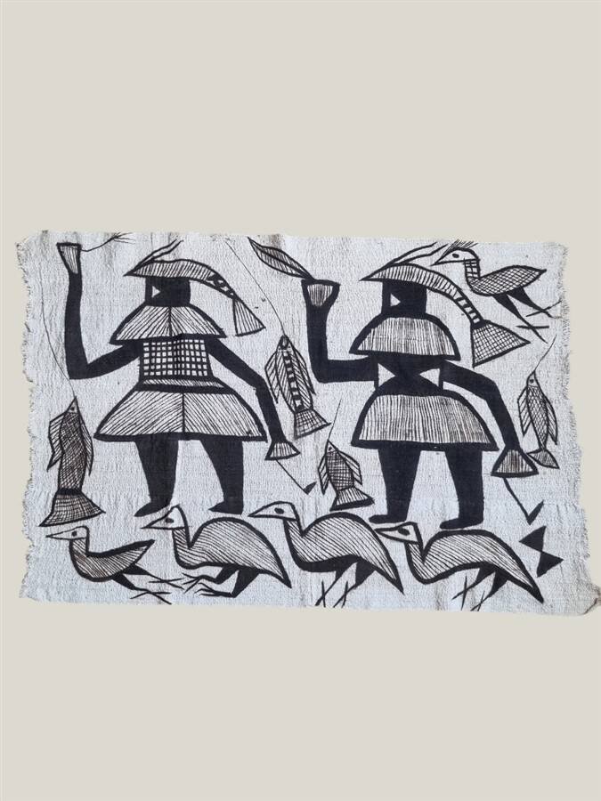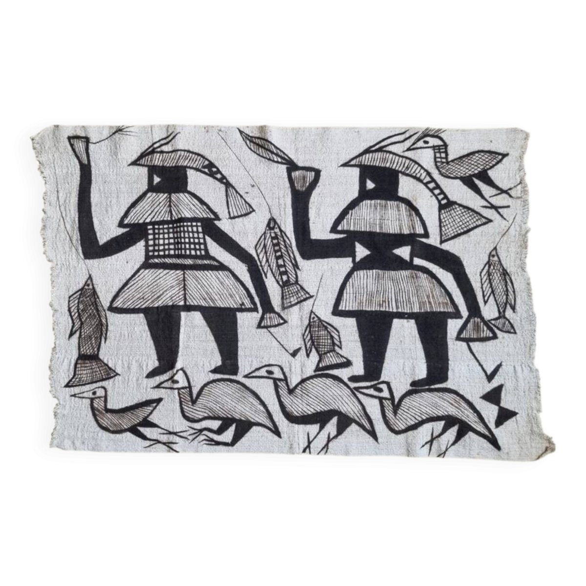 Toile de Korhogo en coton au décor fait main, réalisé à l’aide d’un pigment végétal naturel à base de boue.Dimensions moyennes: 105 X 72 cm.Poids: 230 g.
