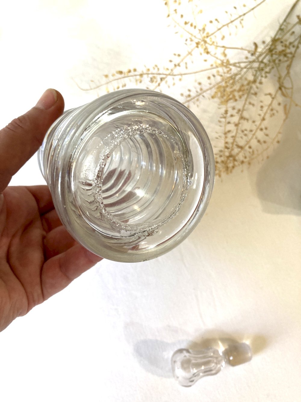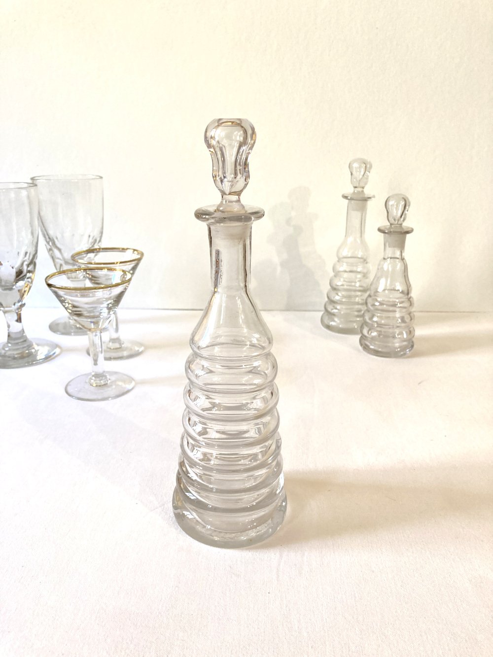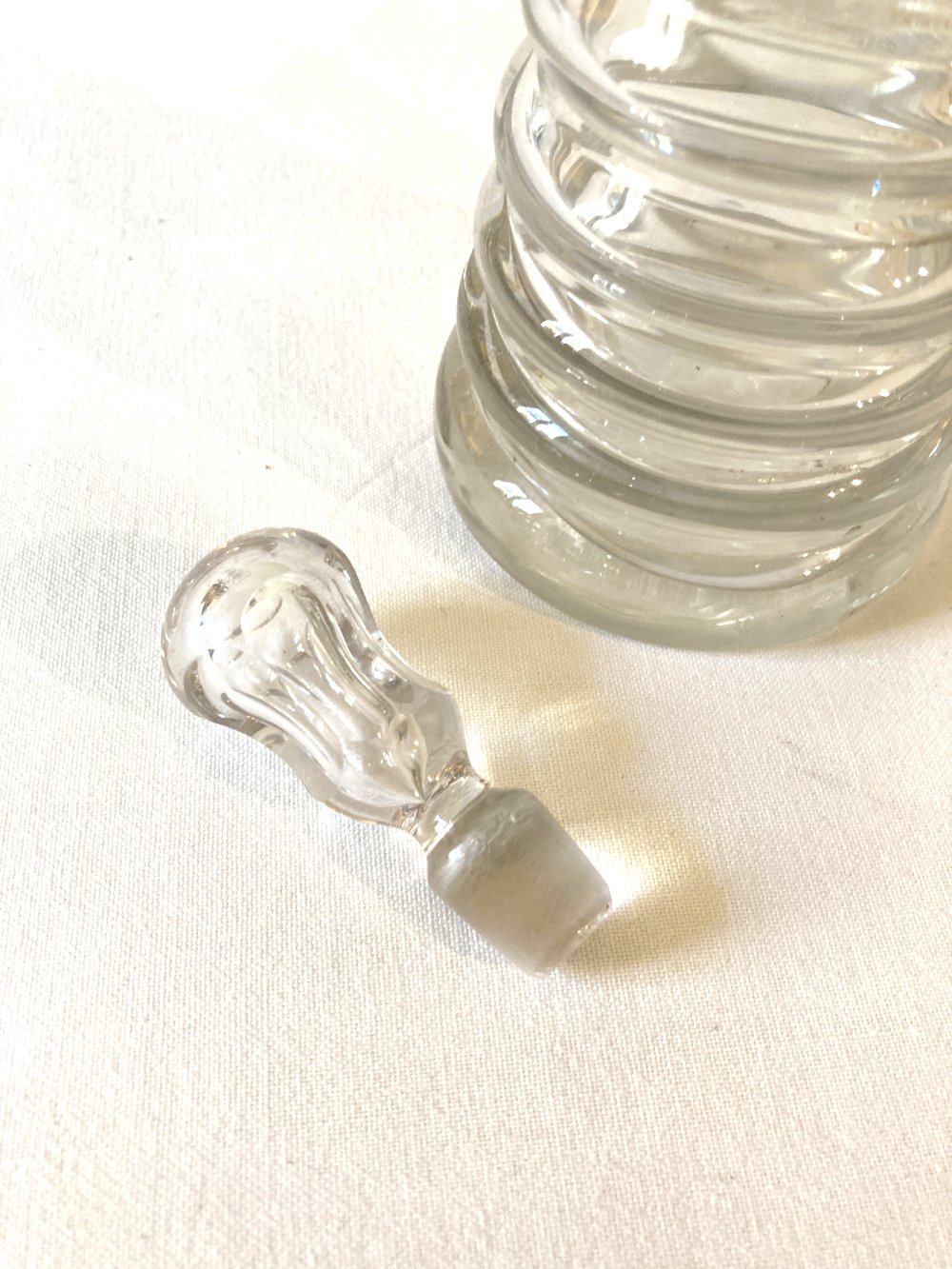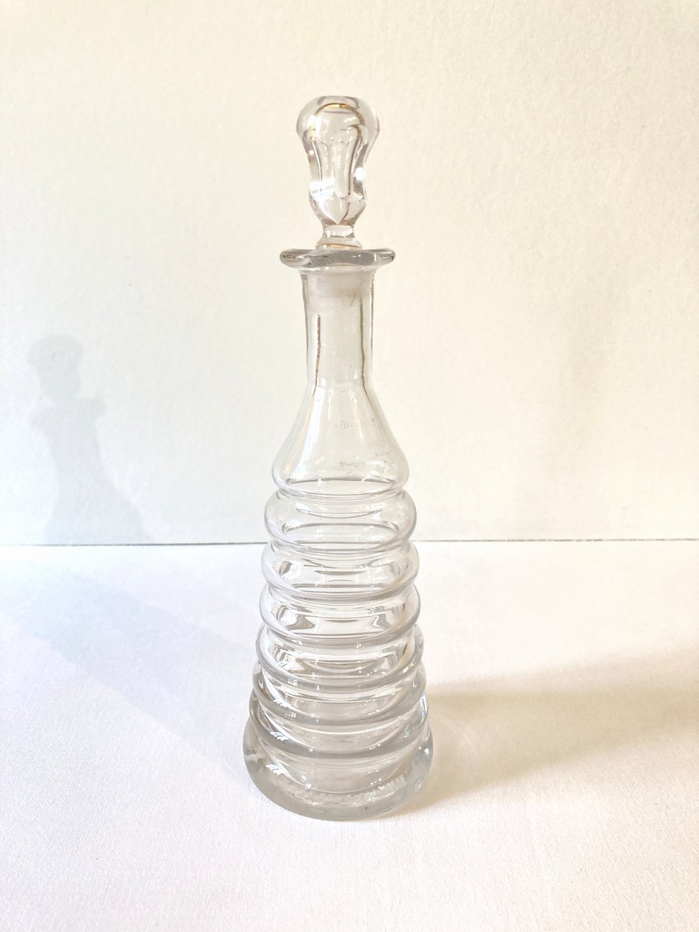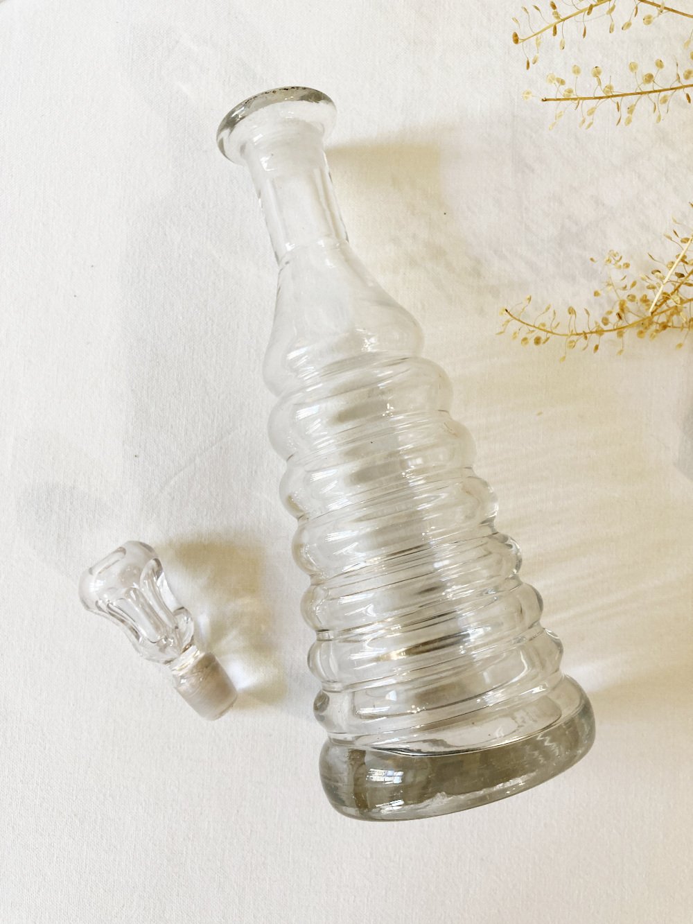 Ancienne topette à absinthe annelée 8 doses en verre soufflé, complète de son bouchon. Vers 1900. En excellent état général, ni éclat, ni fissure.