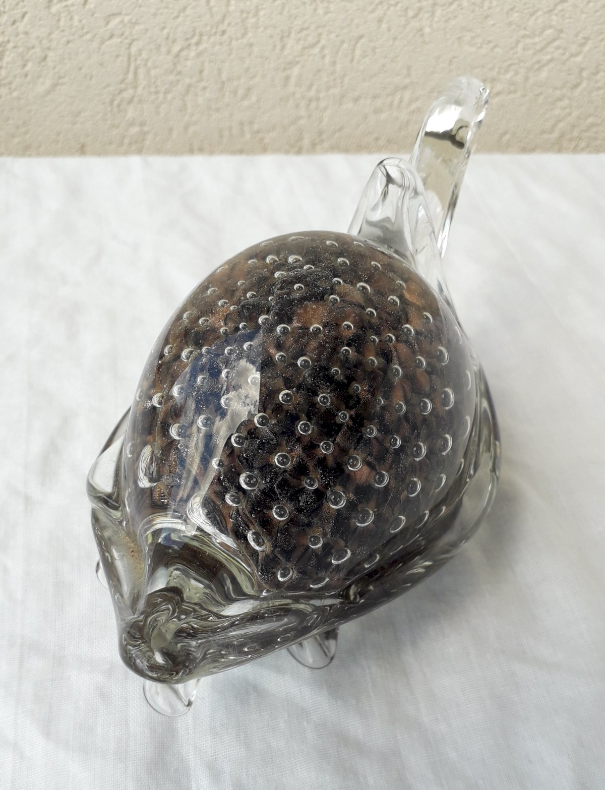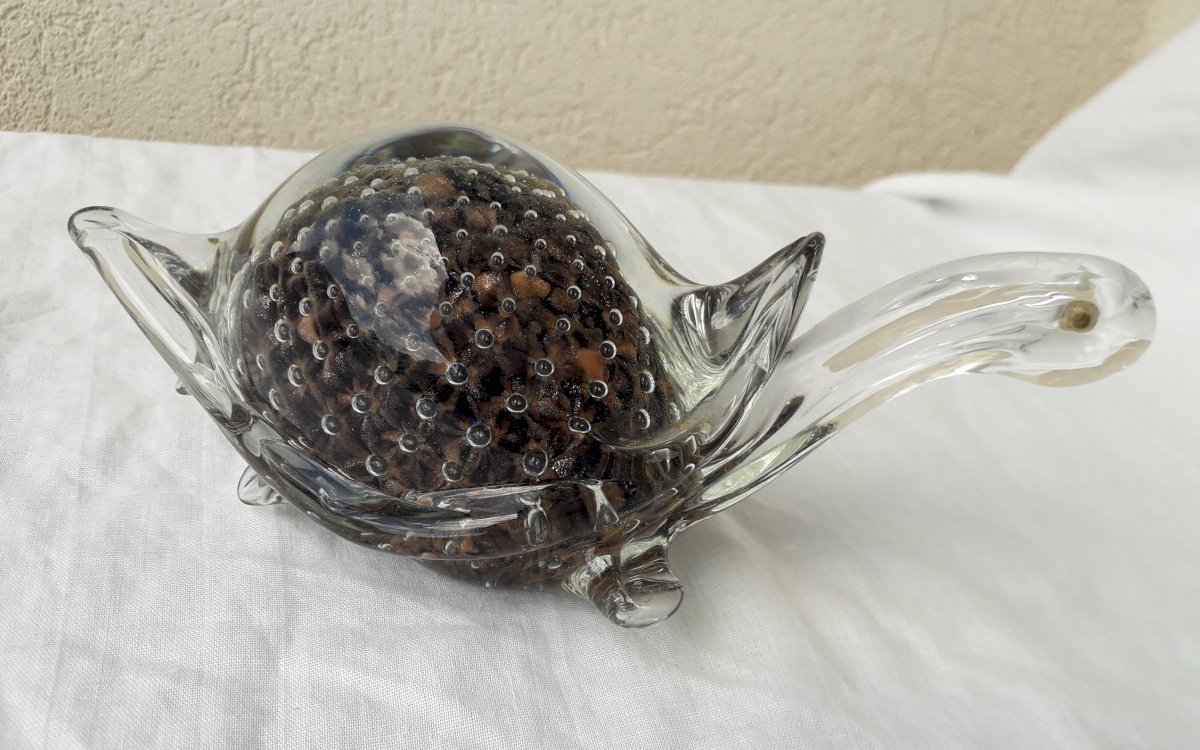 Tortue en verre dans le gout des productions de Murano, décorative, pouvant également servir de presse-papier.