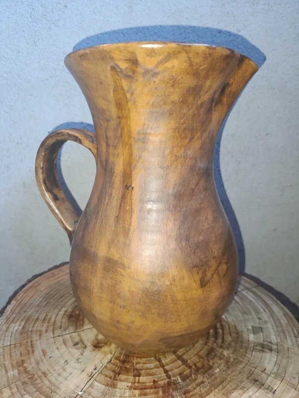 tres grand vase / pichet style bois signé Arlette Roux? en bon etat modele tres décoratif de 35cm de haut petites usures normales d'usages...