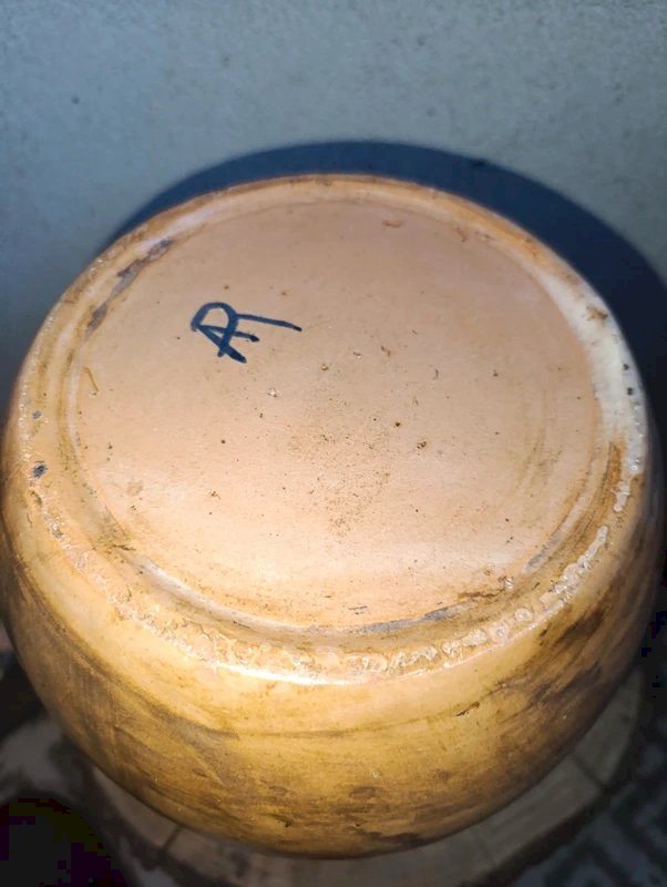 vase a col carre original style moustiers signé sous la base martres tolosane? en bon etat