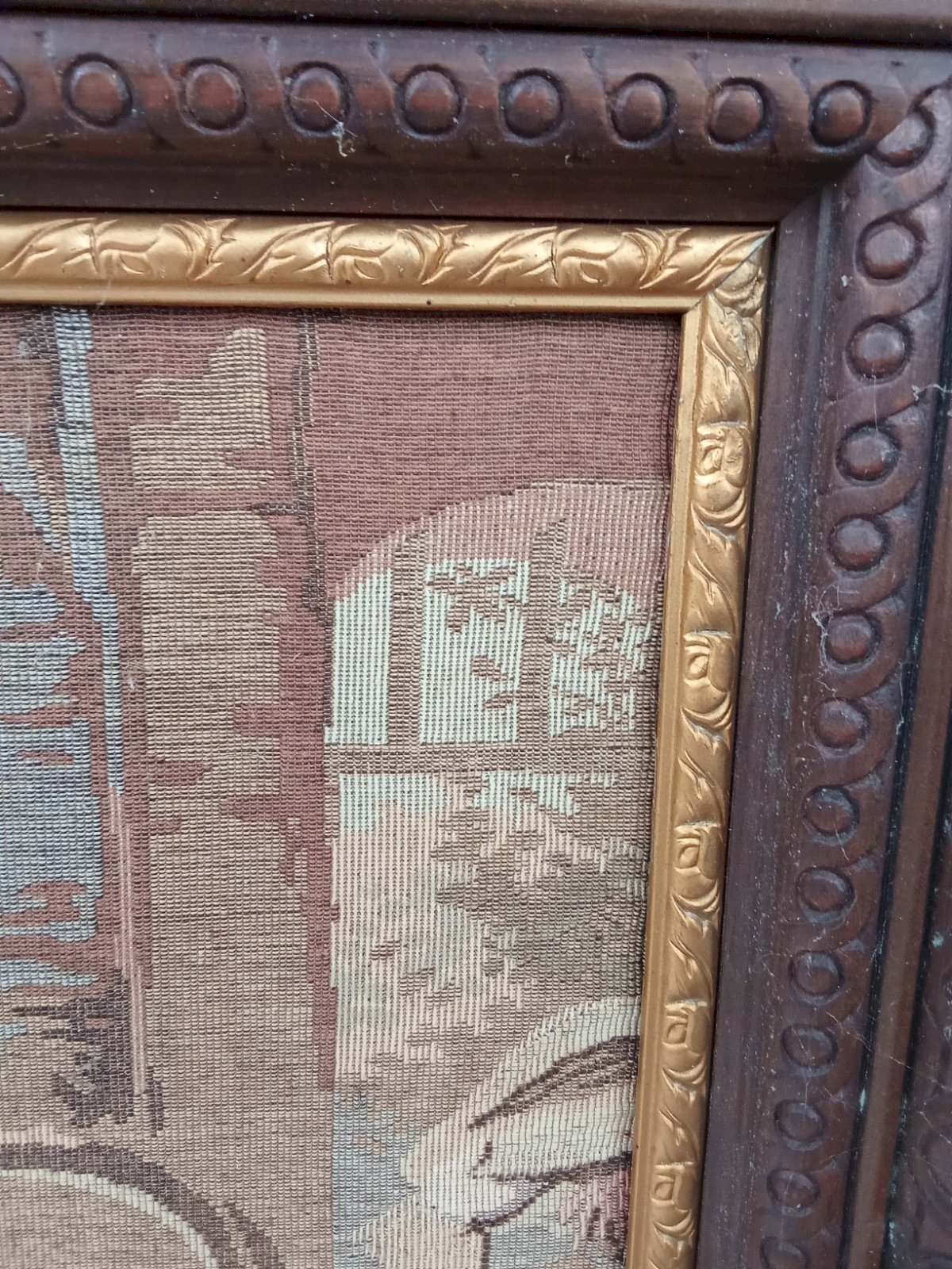 Très Grande tapisserie Encadrée Ancienne Scène Médiévale Moyen Âge Déco Château