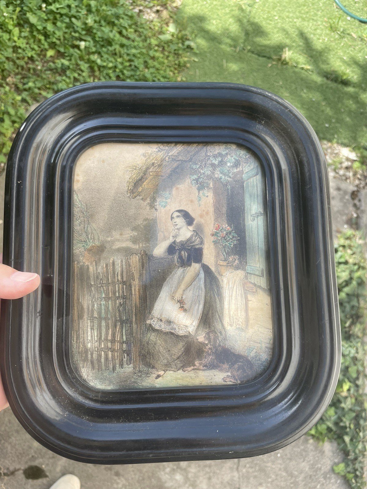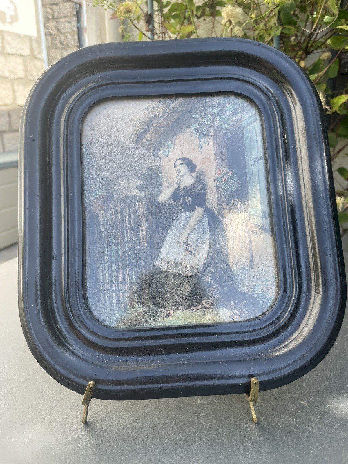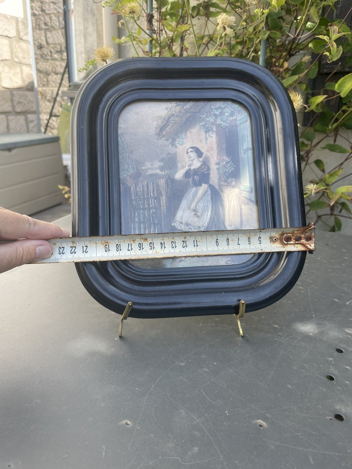 Très joli cadre Napoléon III avec joli impression Portrait XIXème.   très bonne état général  35,5cm x 30,5cm Couleur:Noir Type:Cadre photo Période:XIXème et avant Sous-type:Verre Pays de fabrication:France Matière:Bois Style:Napoleon III Caractéristiques:A suspendre