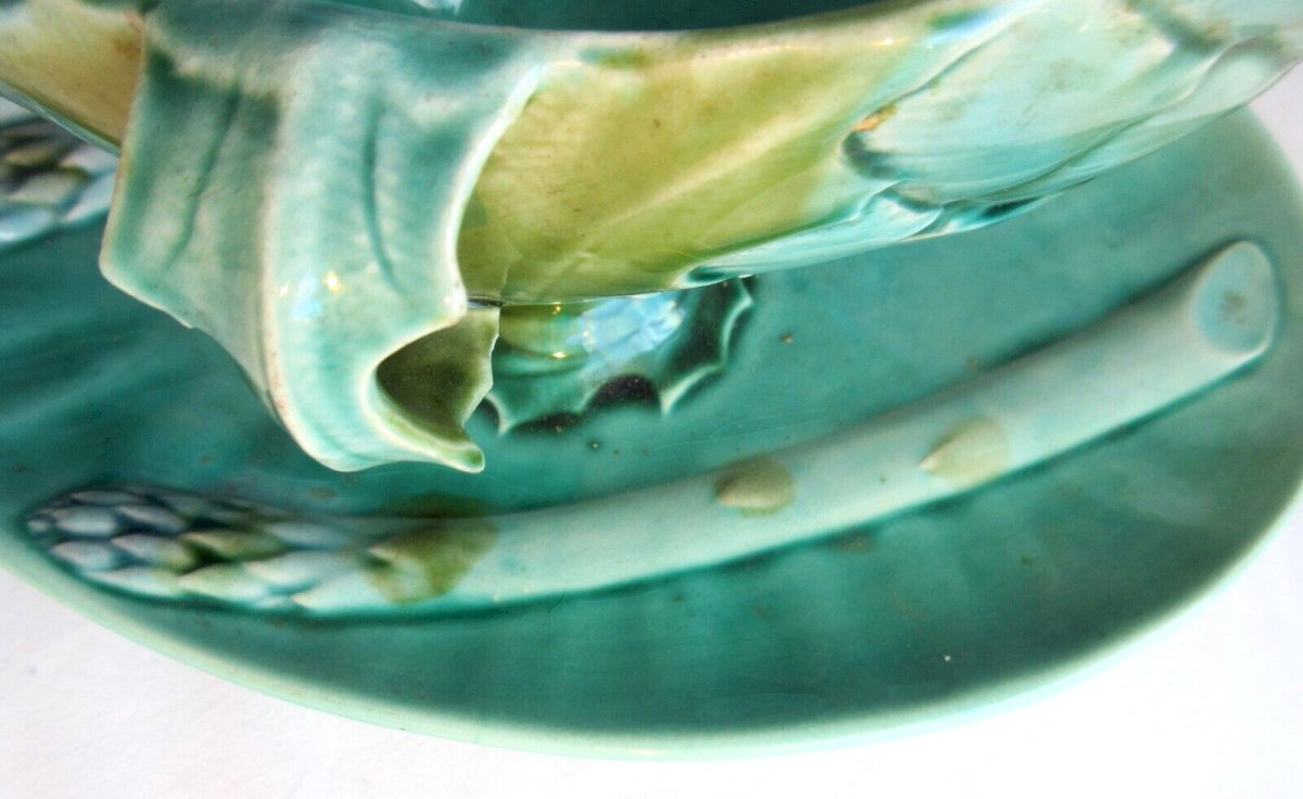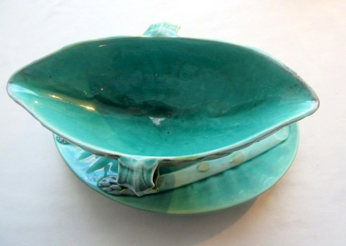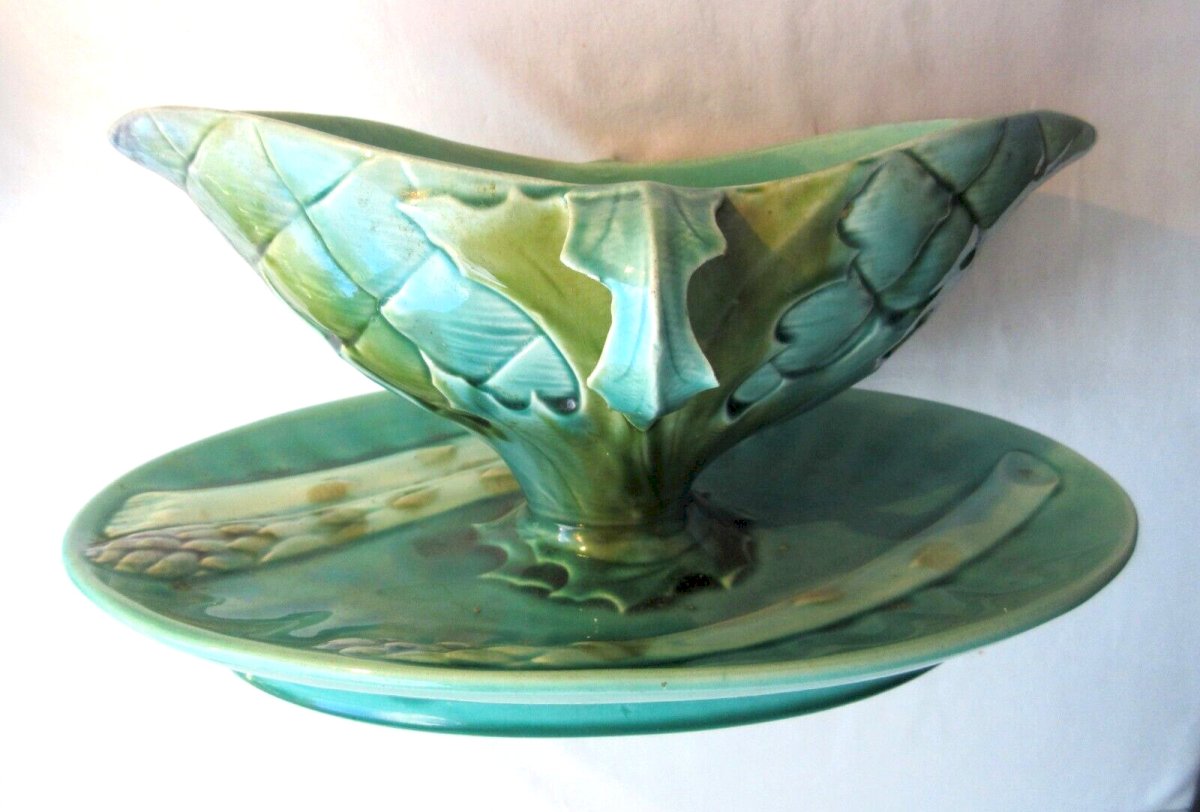 Très rare saucière Majolique Lunéville Keller & Guérin: Asperges et Artichauts