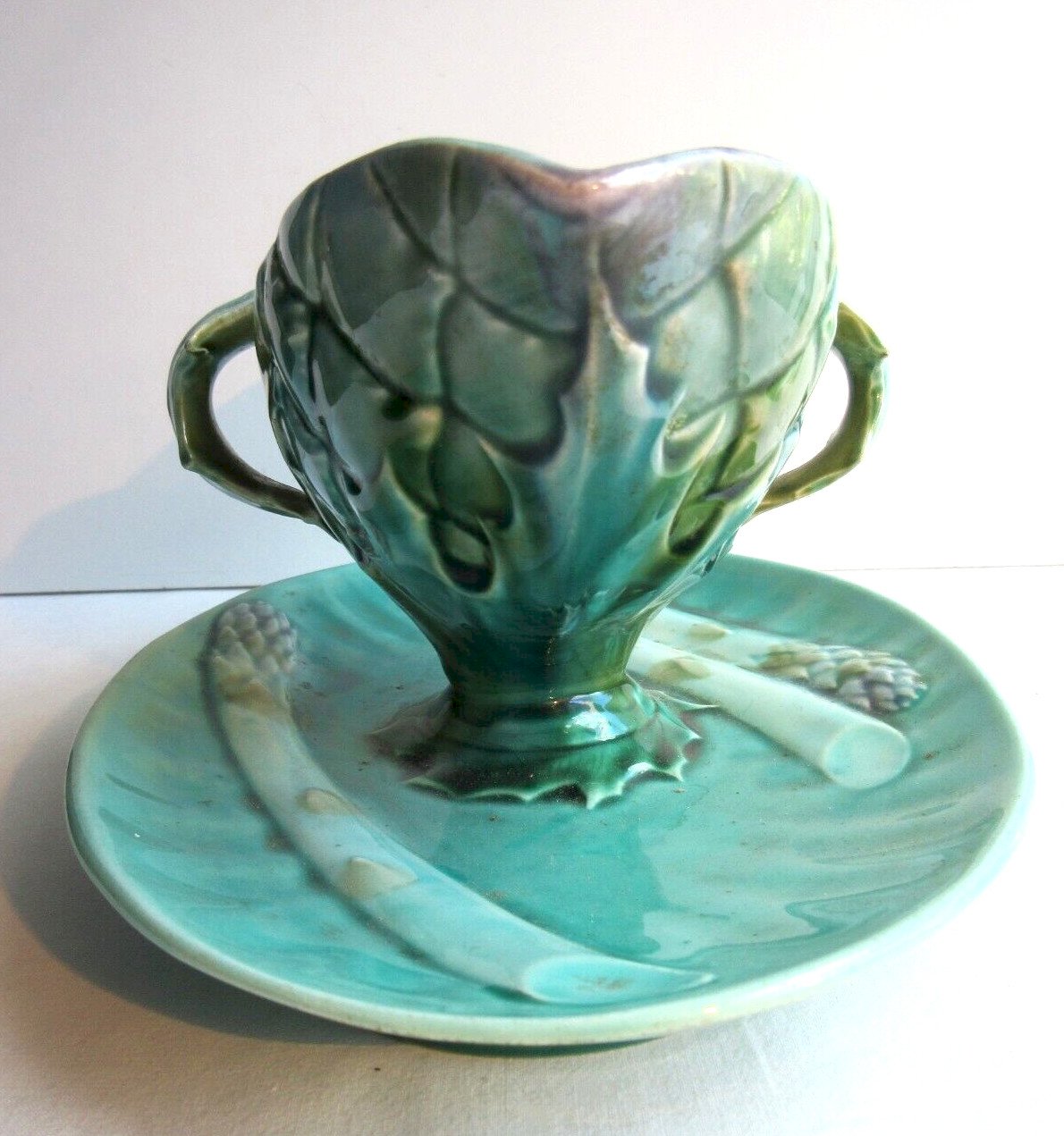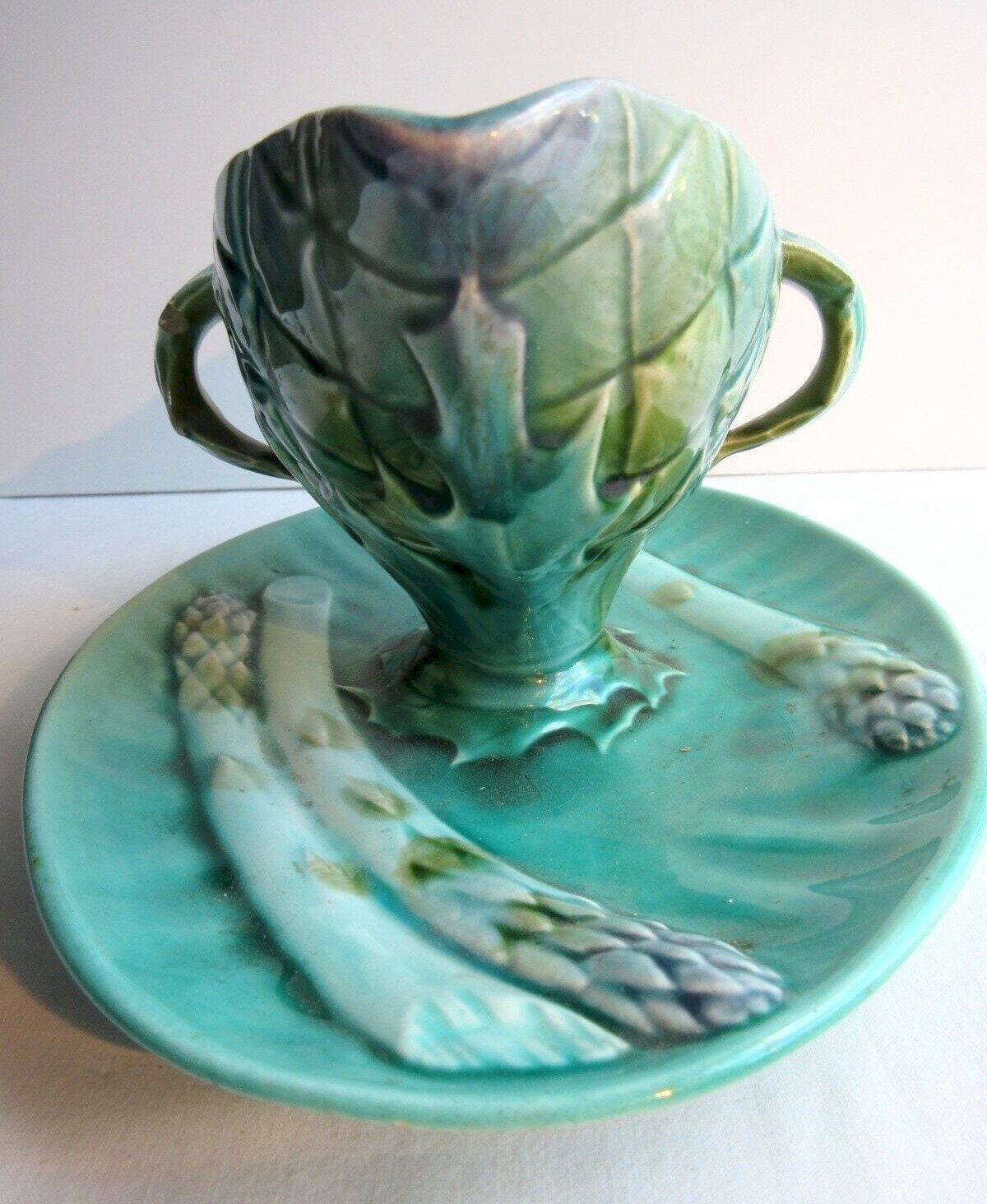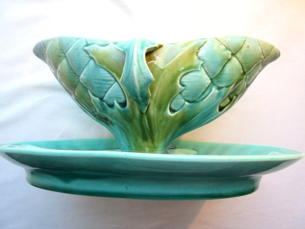 Très rare saucière Majolique Lunéville Keller & Guérin: Asperges et Artichauts