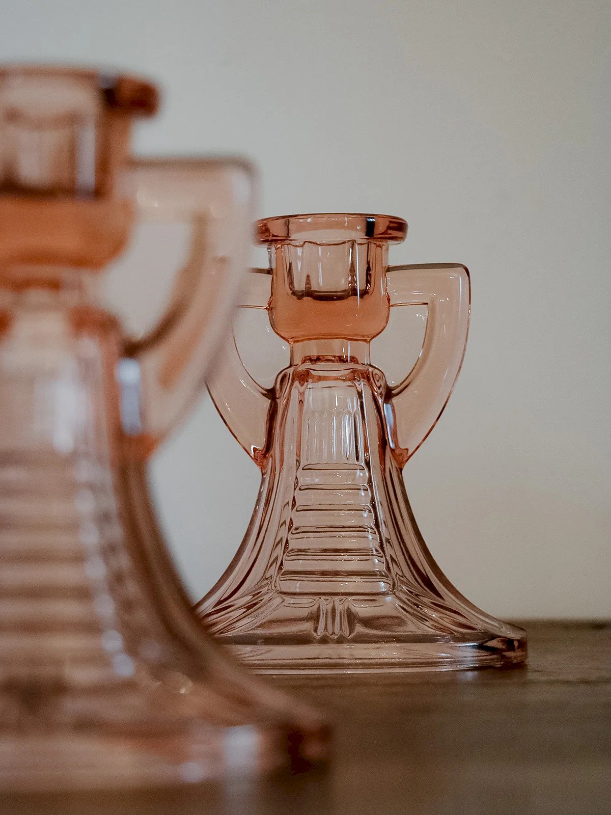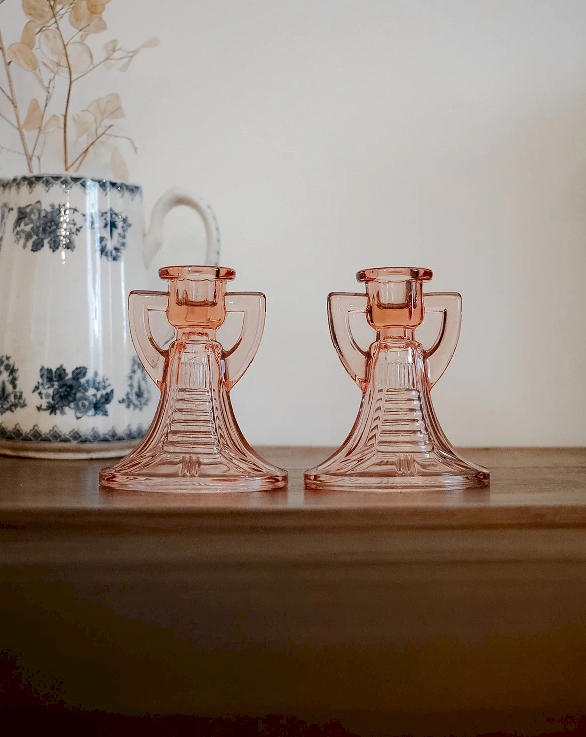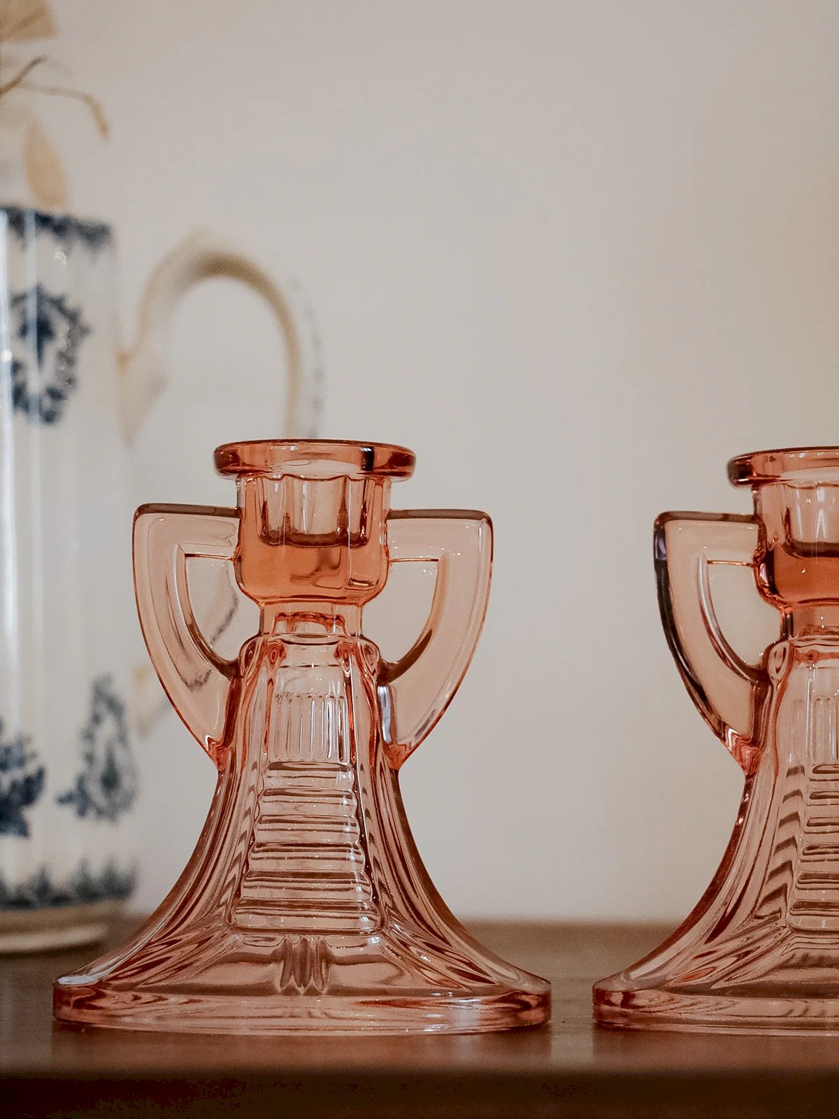 Découvrez cette paire de bougeoirs en cristal rose de Val Saint Lambert, datée de 1935, au dessin délicat et élégant. Leur silhouette svelte et leur faible encombrement les rendent parfaits pour habiller une table intime ou un manteau de cheminée sans alourdir l'espace. Le cristal poli capte la flamme et diffuse un éclat rosé, créant une ambiance chaleureuse et raffinée pour vos dîners ou vos moments calmes. Un ensemble qui évoque l'artisanat belge et l'esthétique des années 30. Diamètre du socle : 6 cm Hauteur : 13,5 cm État:Occasion: Objet ayant été utilisé. Objet présentant quelques marques d'usure superficielle, ...Occasion: Objet ayant été utilisé. Objet présentant quelques marques d'usure superficielle, entièrement opérationnel et fonctionnant correctement. Il peut s'agir d'un modèle de démonstration ou d'un objet retourné en magasin après une courte période d'utilisation. les éventuelles imperfections. Marque:Debongout Type:Produit chiné Matériau:Cristal Style:Contemporain