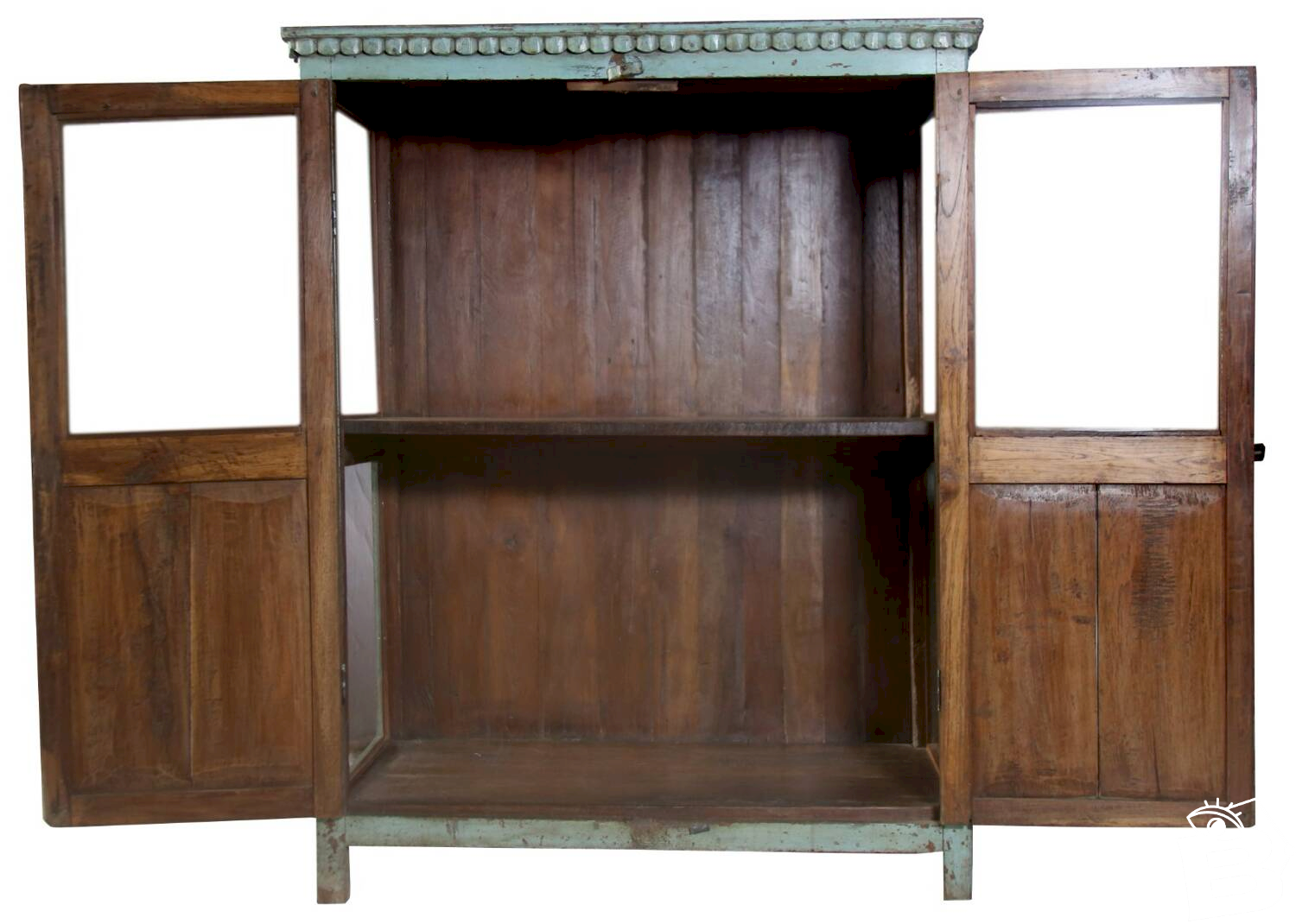 Ancien vaisselier - armoire en teck birman / belle patine verte pistache d'origine /108 X 56 X 136 cm - 55 kg