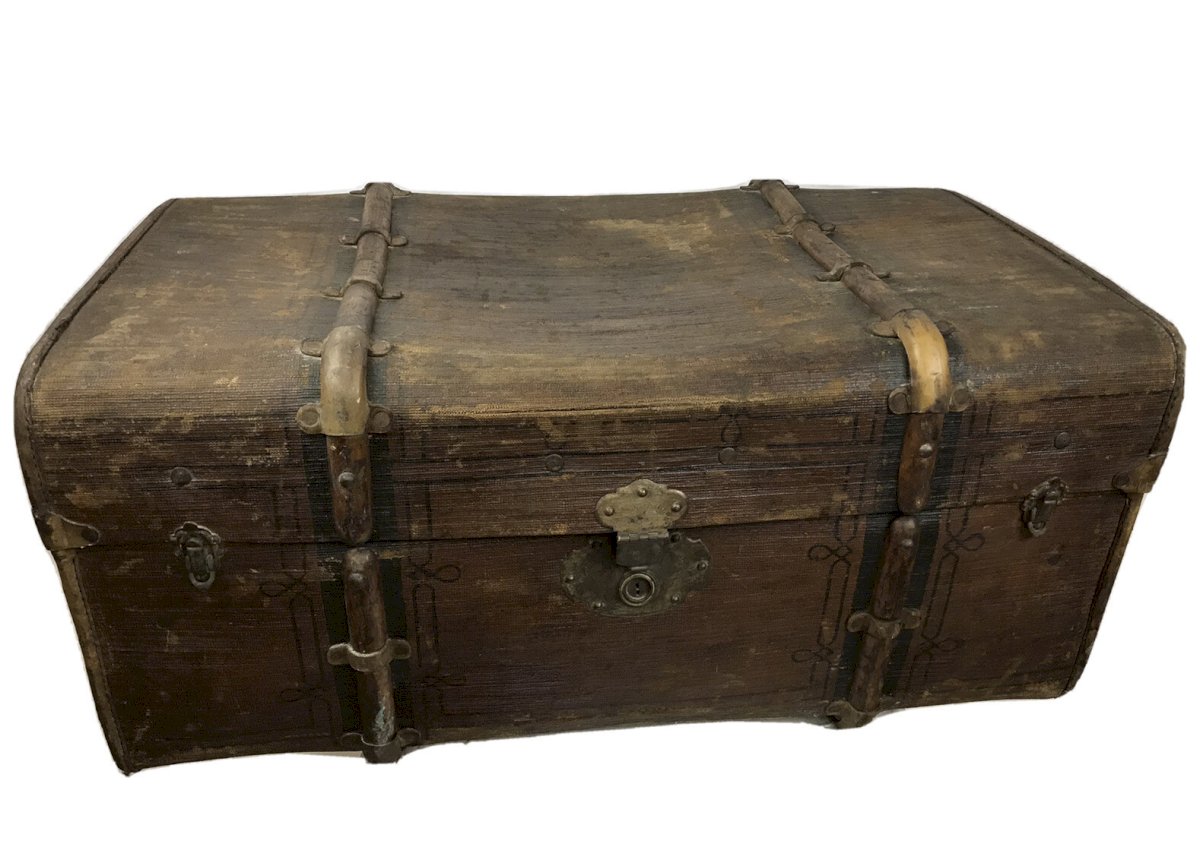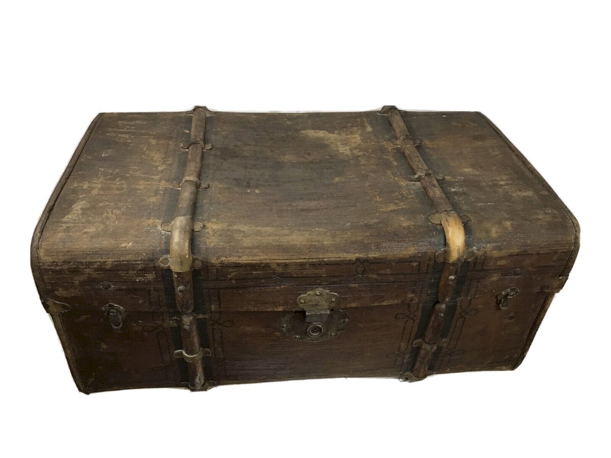 Grande Malle Ancienne Albert Koenig Von Sachsen XIX Madler’s Patent Fabrik Marke.  Moritz Madler. Malle valise de voyage ancienne début 19eme. La valise est fabriquée avec des fibres naturelles traitées selon une méthode que la marque moritz mädler a inventée et qui rendait la malle étanche.  Poignée accidentée. Dimension 86x54x40 cm Service de livraison : Colissimo Authenticité:Original Type:Valise de voyage Marque:Koenig von Sachsen Origine:Allemagne Sous-type:Valise Pays d'origine:Allemagne Style:Voyage ancien Matière:Toile