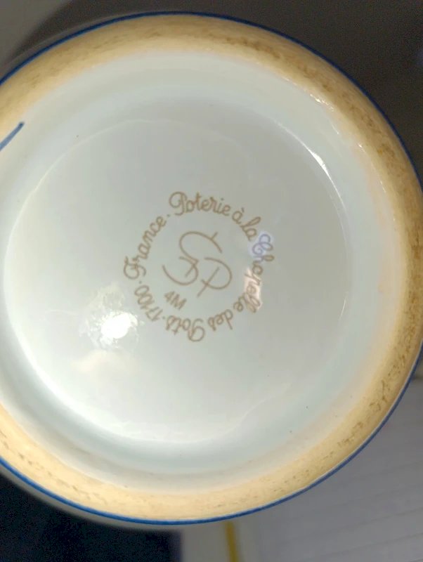 vase à decor floral signé de la poterie à la chappelle des pots en bon etat Bleu