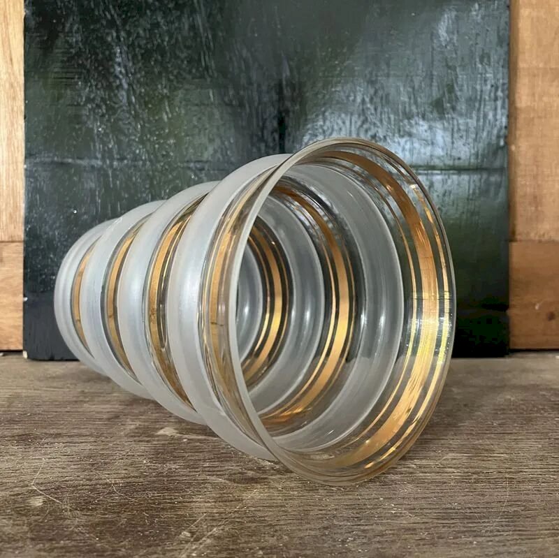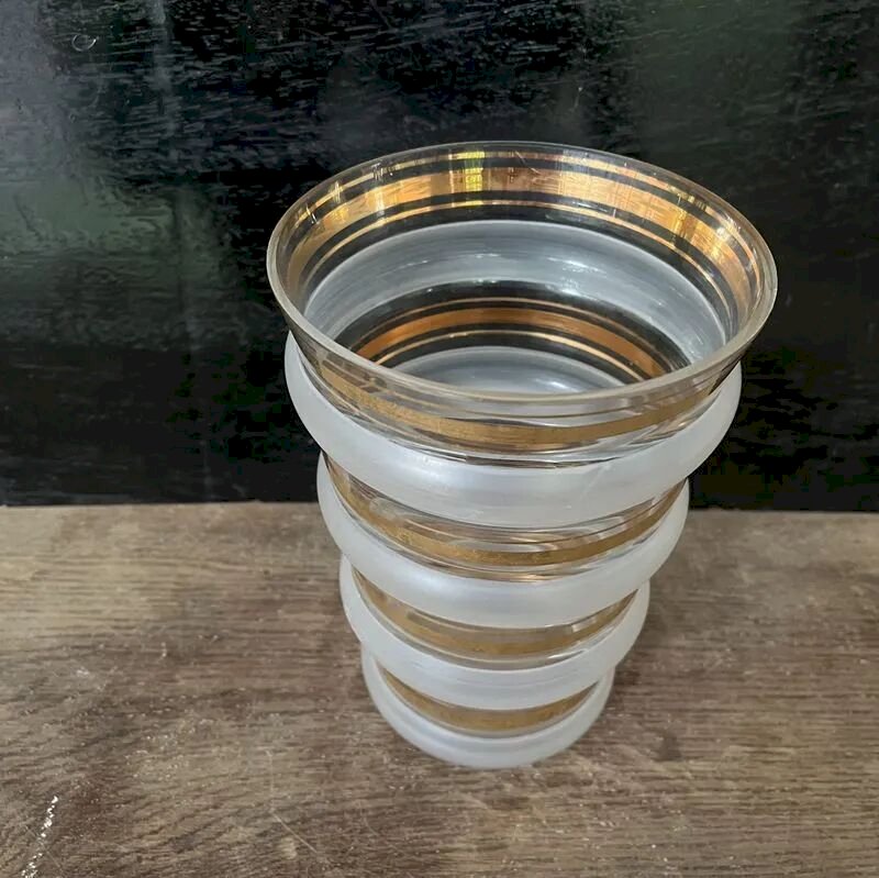 Élégant et discret mais avec ce petit twist qui le rend unique, ce vase de style Art Déco offre un jeu de textures givrées et dorées tel les verres à cocktail des années 50.