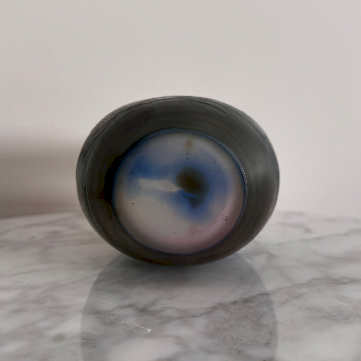 Vase Art Nouveau par Gallé en pâte de verre dégagée à l'acide végétation M3683