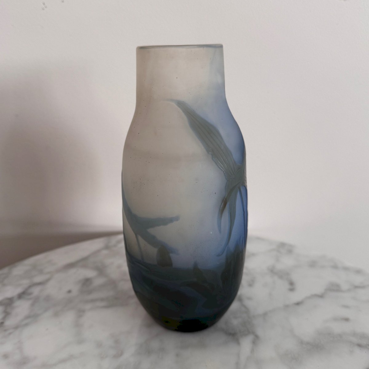 Vase Art Nouveau par Gallé en pâte de verre dégagée à l'acide décor de végétation M3683 Ce vase sur fond bleu et blanc porte la signature Gallé, il possède un décor dégagé à l'acide. Il est authentique et ancien. Il est en parfait état.  Nos photos vous permettent d'apprécier la qualité de l'objet. Pour l'état, merci de bien détailler les photos. N'hésitez pas à zoomer . Les photos font partie intégrante de la description. Dimensions : Hauteur : 19,5 cm Largeur : 10,5 cm Profondeur : 8,5 cm A :  BEEBXLH16L P :  1614123   Je reste à votre disposition pour toute question. Marque:Gallé Type:Objet de vitrine, Décoratif Période:Art Nouveau Sous-type:Vase Pays de fabrication:France Hauteur:19,5 cm Matière:Verre Style:Art Nouveau Longueur:cm Largeur:10,5 cm