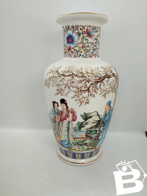 Tres beau vase asiatique (japon?) Ã decor de geisha et floral en bon etat( made in chiner)