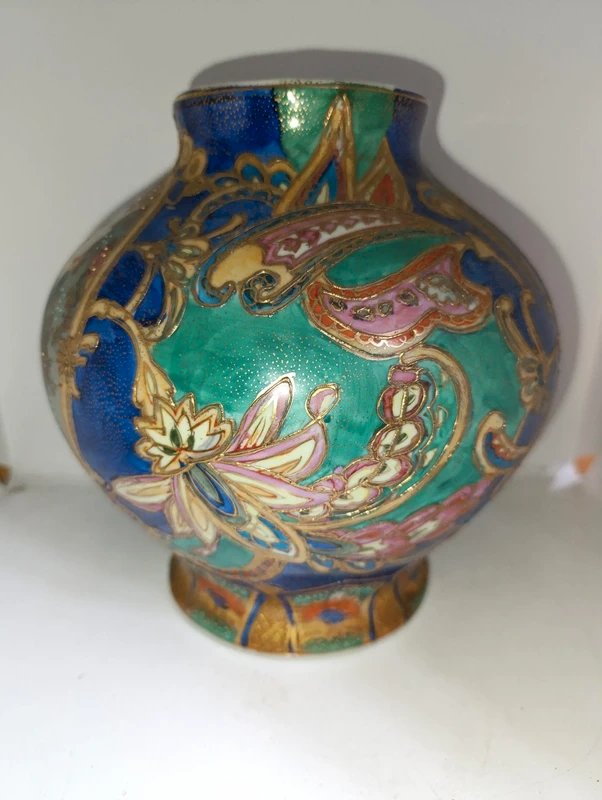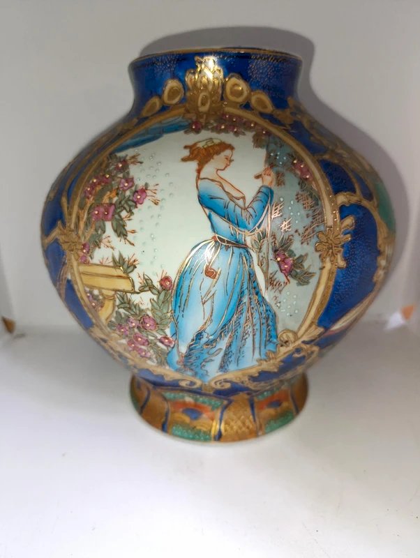vase boule chinois 20eme siecle couleur cobalt a decor floral et de femme en bon etat