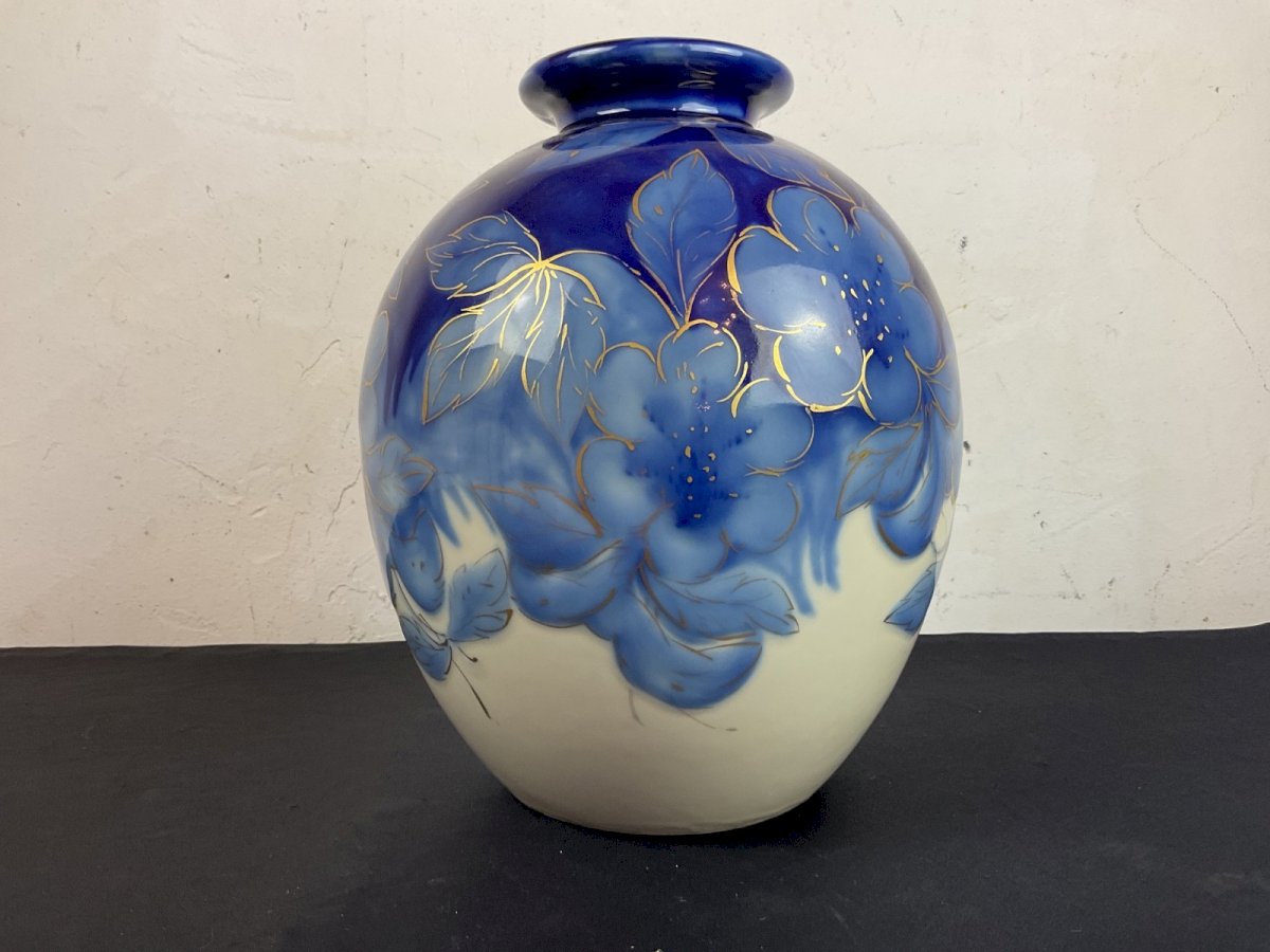Vase boule en porcelaine émaillée  Camille Tharaud 1878-1956  Limoges Hauteur : 26 cm Objet:Vase Numéro de pièce fabricant:Aucun Pays de fabrication:France