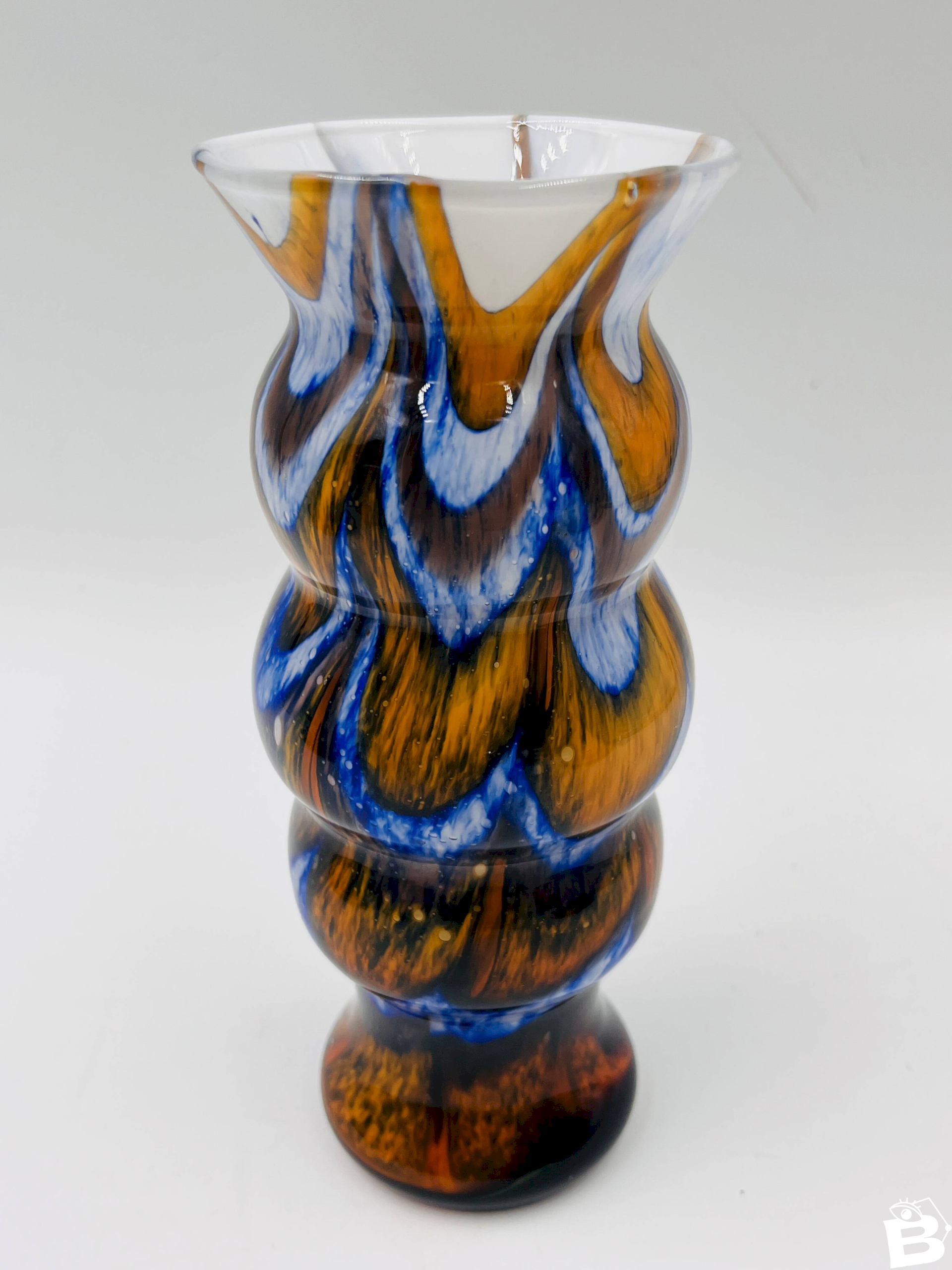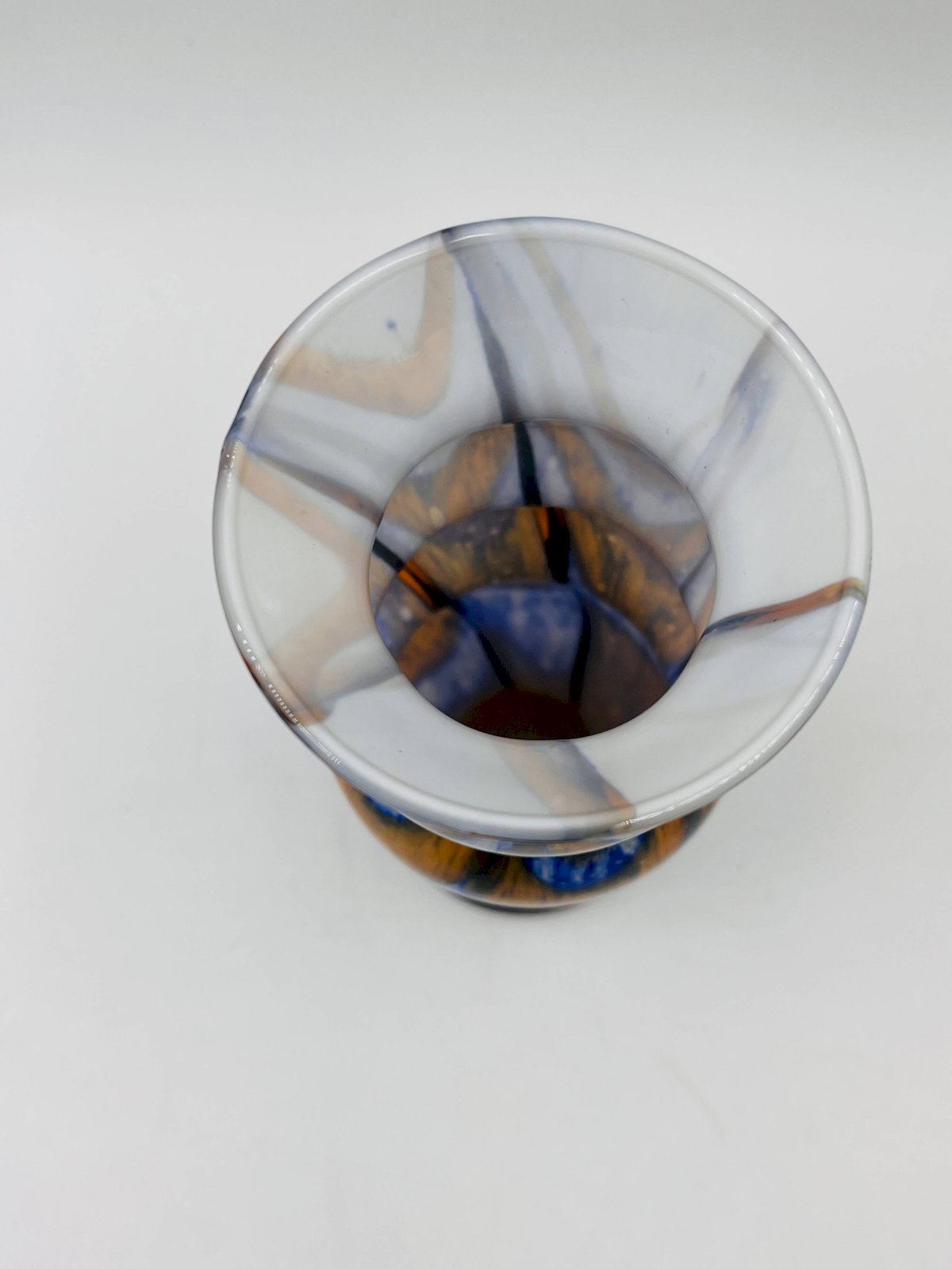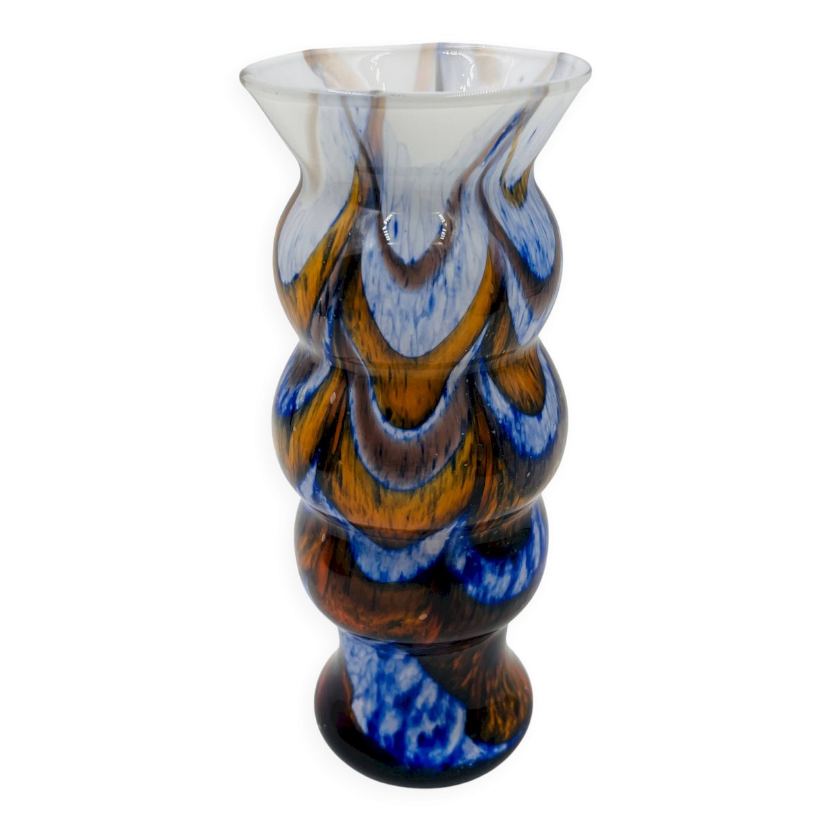 Avec ses couleurs vibrantes de bleu, orange et blanc, ce vase est un exemple parfait du savoir-faire artisanal italien.