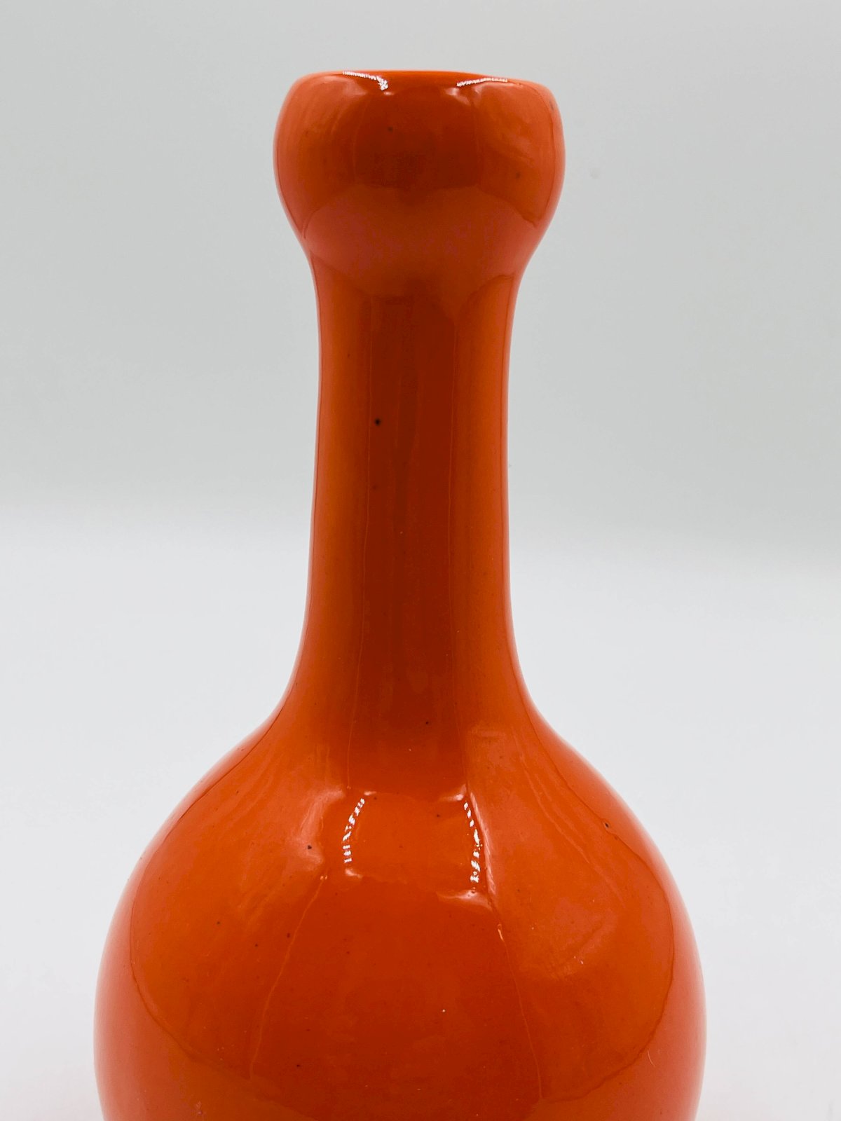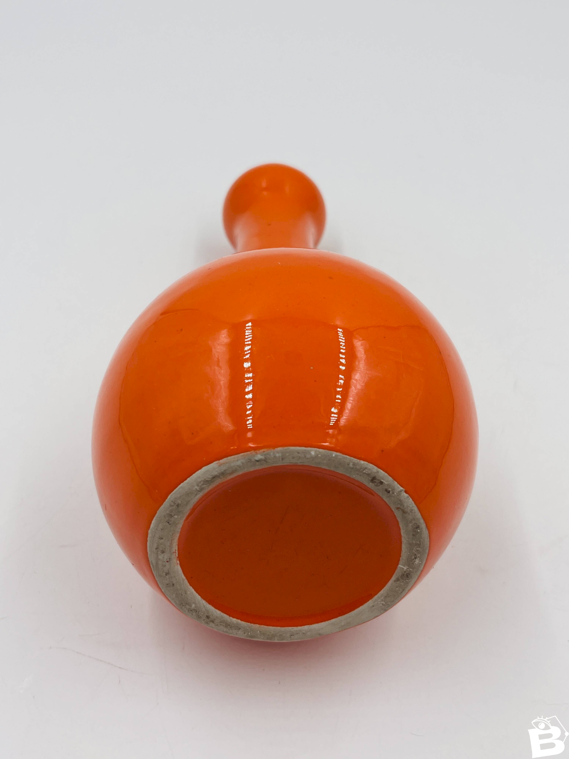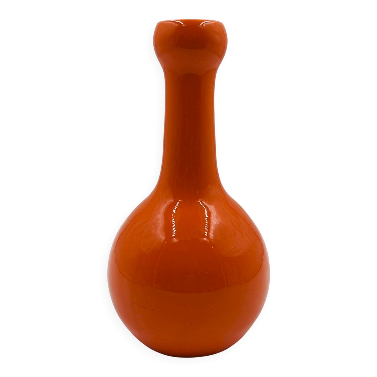 Ajoutez une touche de dynamisme à votre intérieur avec ce superbe vase bouteille en céramique orange d'Italie.