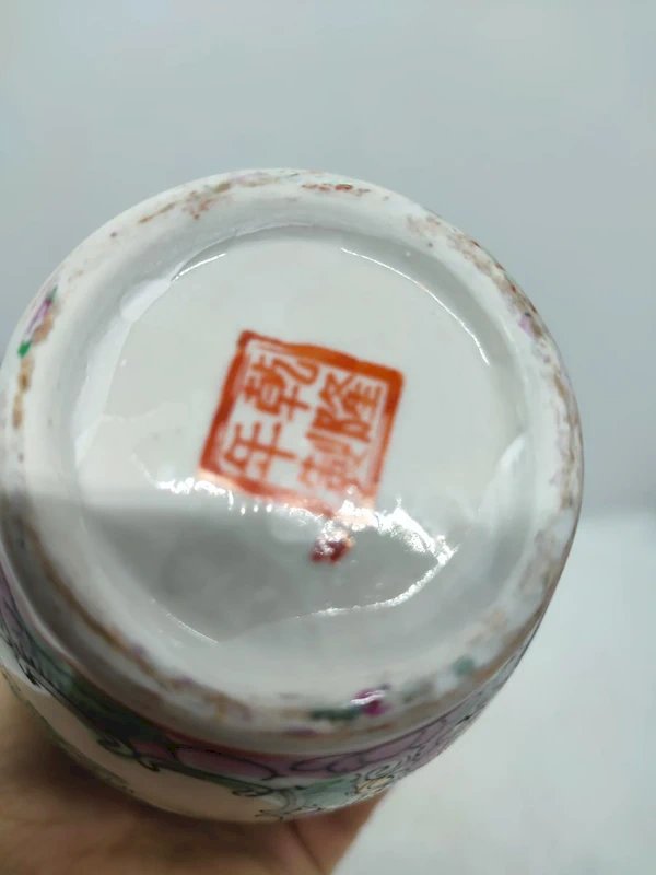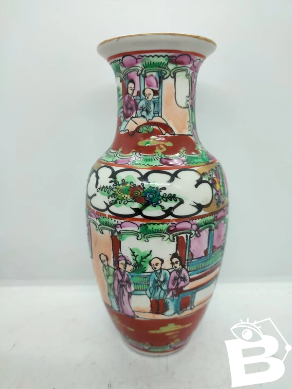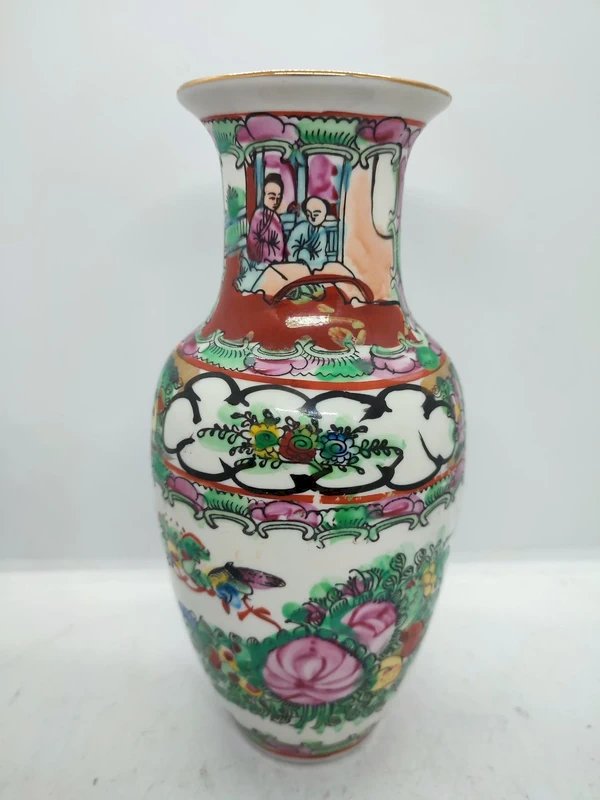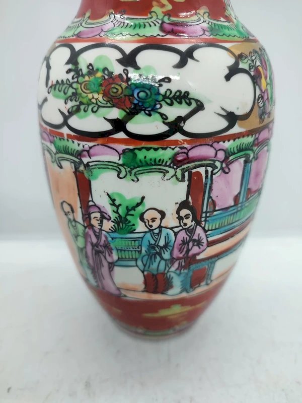 Vase chinois à decor floral et de personnages daté du 20eme en bon etat