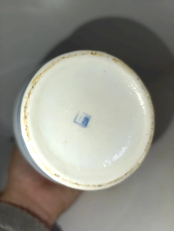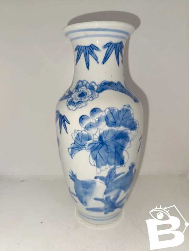 Vase chinois en porcelaine a décor floral en bon état Bleu