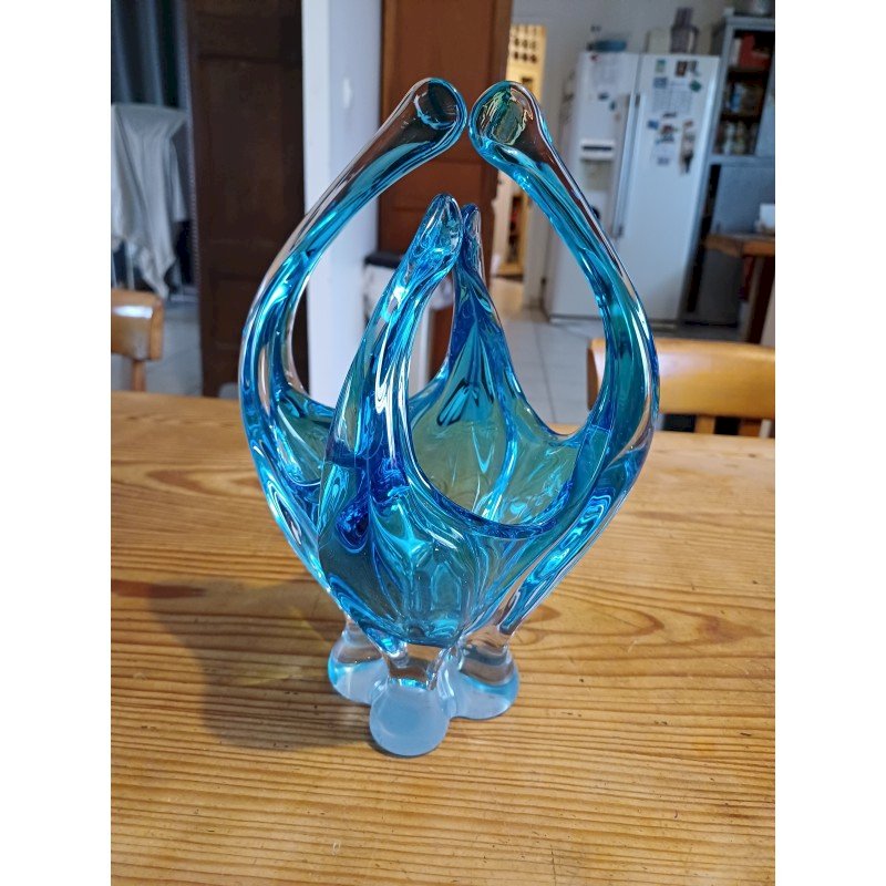 Vase Cristal , Vintage des Années 60 , Haut : 26 cm , long et larg : 17 cm sur 15 cm , poids : 1,7 Kg , très bon état