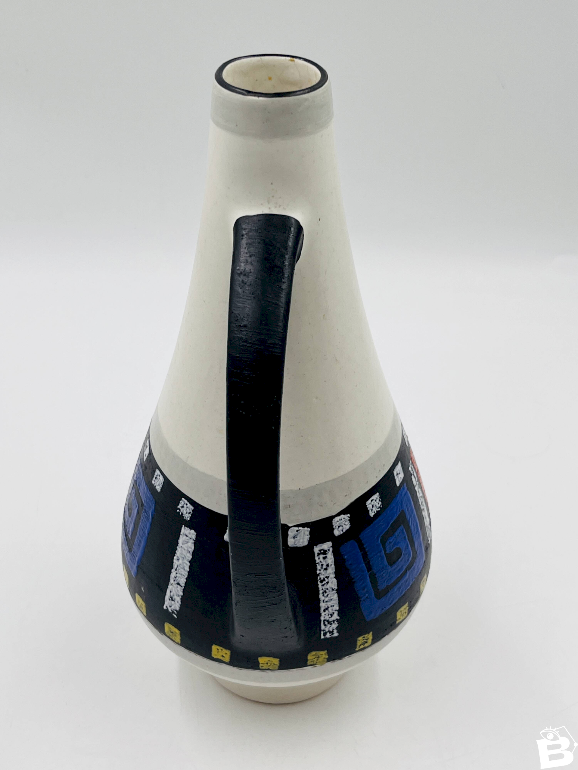 L'anse unique du vase lui confère une touche de sophistication, ce qui en fait une pièce maîtresse idéale pour tout collectionneur exigeant.Fabriqué en céramique de haute qualité, il garantit durabilité et beauté durable.Son design géométrique distinctif capture l'essence même de l'esthétique moderne du milieu du siècle.Son charme vintage est sublimé par de subtiles traces d'usure, lui conférant caractère et authenticité.Rehaussez votre décoration intérieure avec cette pièce remarquable, témoignage du savoir-faire artisanal de Dümler & Breiden.