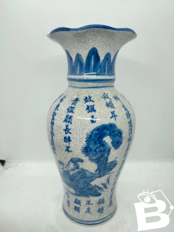 vase d'origine chinoise en ceramique craquelé datant du 20eme siecle en bon etat hauteur 25cm décor de scene de vie et symbole